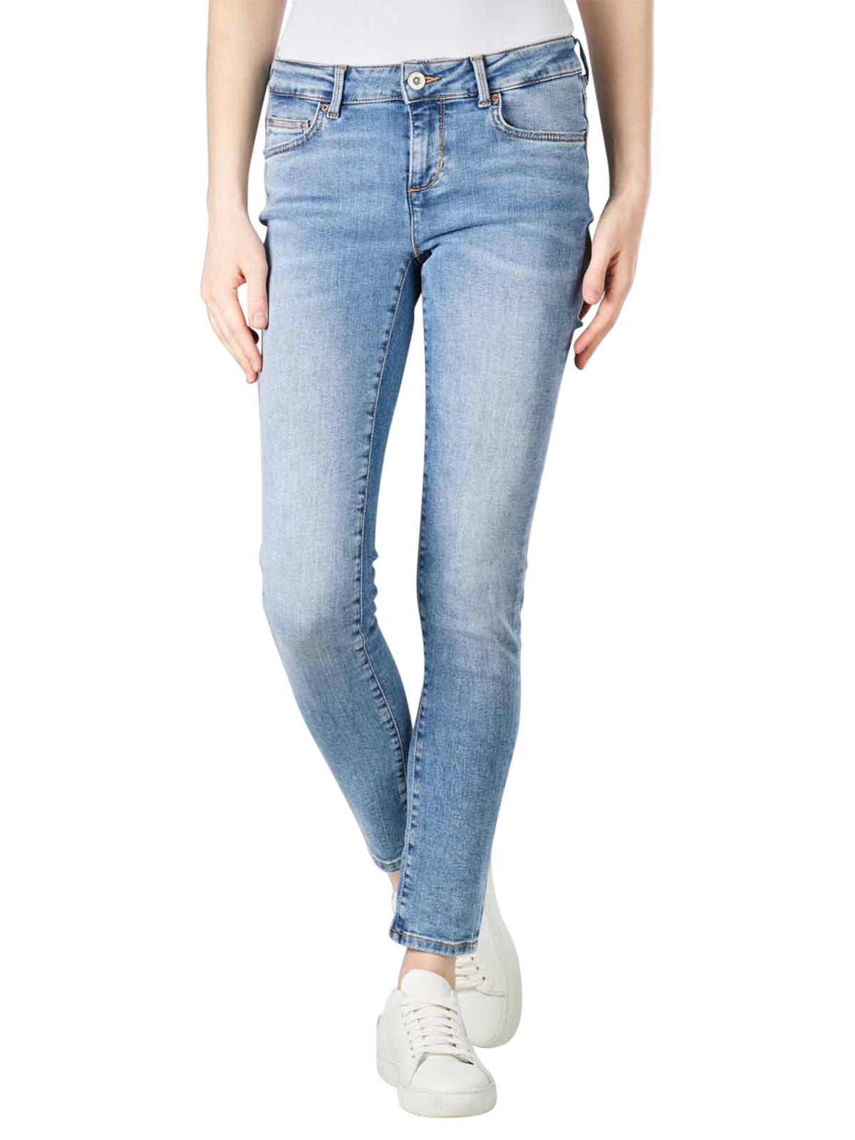 Die Damenhose besitzt eine Skinny Fit-Passform. Dadurch sind die Oberschenkel und Beinausschnitte eng. Das Trocknen im Trockner wird nicht empfohlen. Gebügelt werden kann die Hose bei höchstens 110 Grad. Das Waschen im Normalwaschgang bei 30 Grad ist für die Hose kein Problem. Durch den Stretchanteil und dem Reissverschluss mit Knopf kann die Hose optimal verschlossen werden.