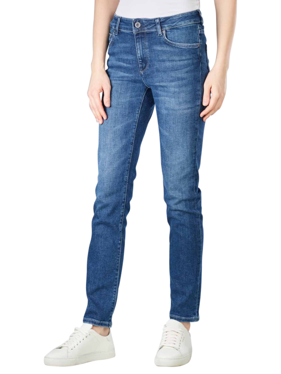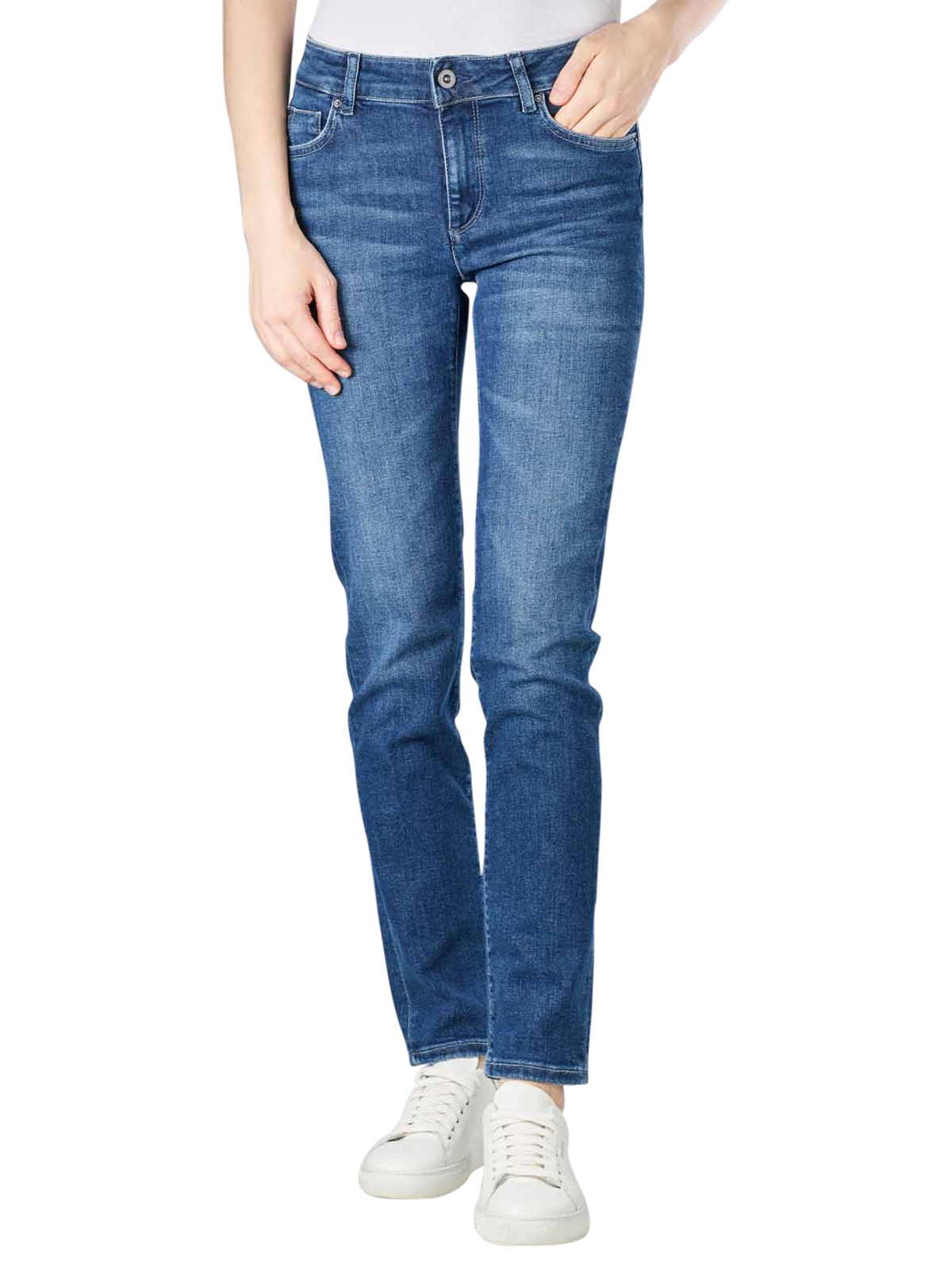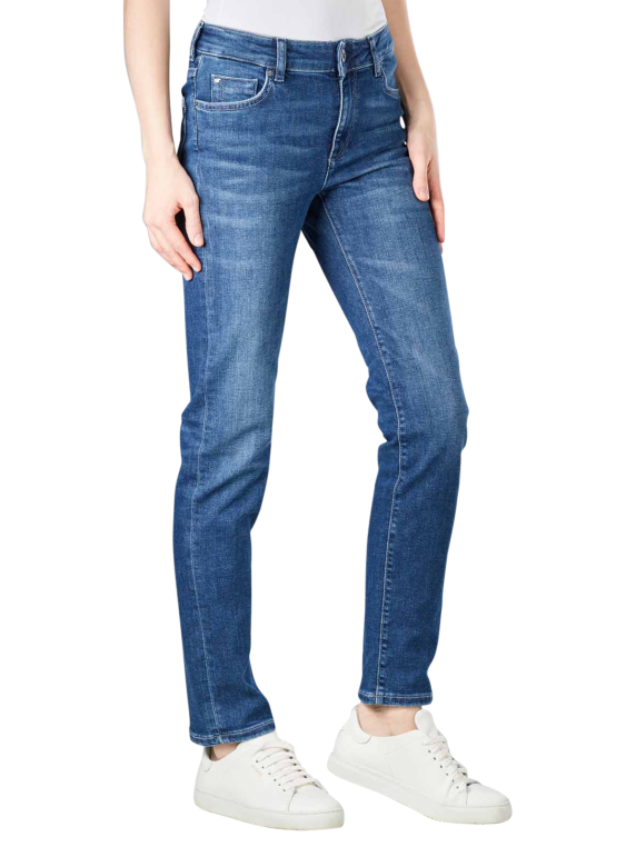 Die Damenhose mit Stretchanteil besitzt eine Slim Fit-Passform. Dadurch verlaufen die Oberschenkel und Beinausschnitte gerade und eng. Die Bundhöhe ist mittel und zusammen mit dem Reissverschluss und dem Hosenknopf sitzt die Hose perfekt. Die Hose kann bei einem Normalwaschgang mit 30 Grad gewaschen werden. Das Trocknen im Trockner wird nicht empfohlen. Das Bügeln bis 110 Grad ist jedoch möglich.