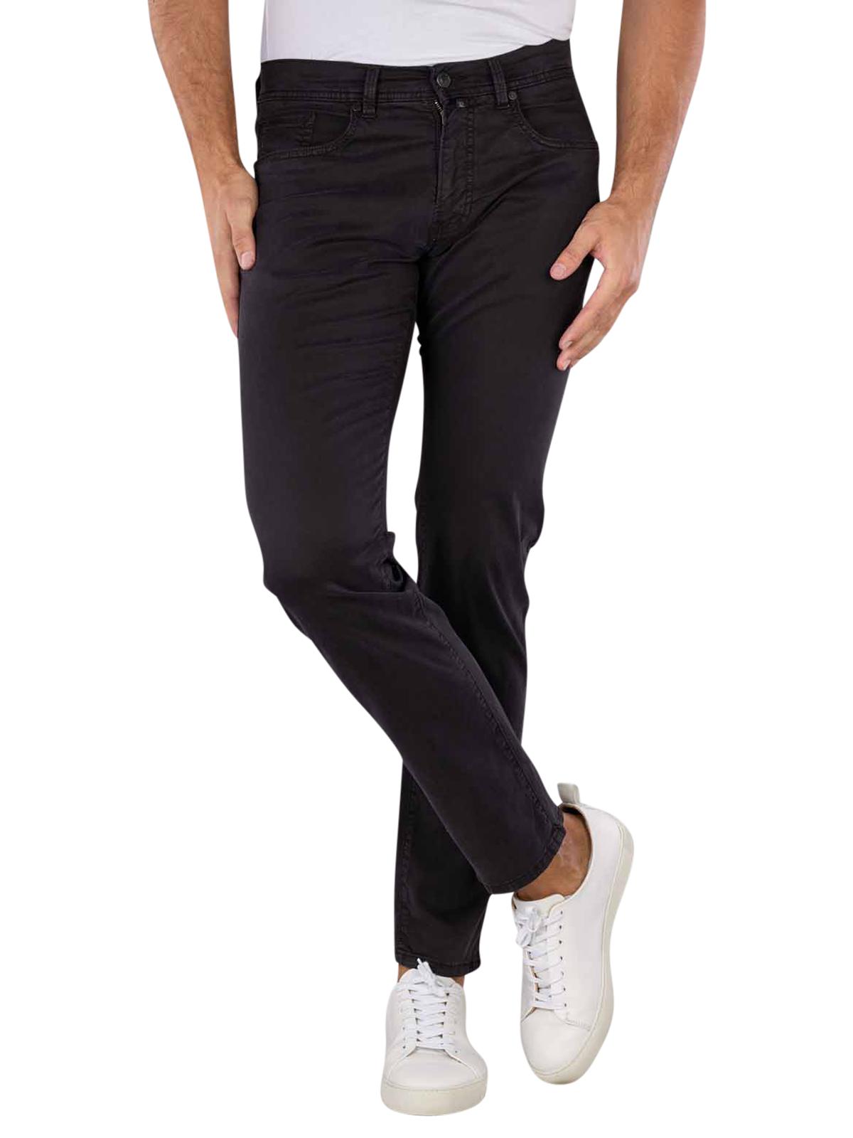 Die Pierre Cardin Lyon Pant in Schwarz ist eine Herren-Hose mit Tapered Fit und eng/geradem Beinausschnitt. Sie hat eine mitteltiefe Bundhöhe, besteht aus 72% Baumwolle, 26% Lyocell und 2% Elasthan und bietet dank Stretchanteil hohen Tragekomfort. Diese Five-Pocket-Hose ist dünn bis standarddick und wird mit Reissverschluss geschlossen. Pflegehinweise: Schonwaschgang bei 30°C, nicht bleichen. Ideal für modische Vielseitigkeit.