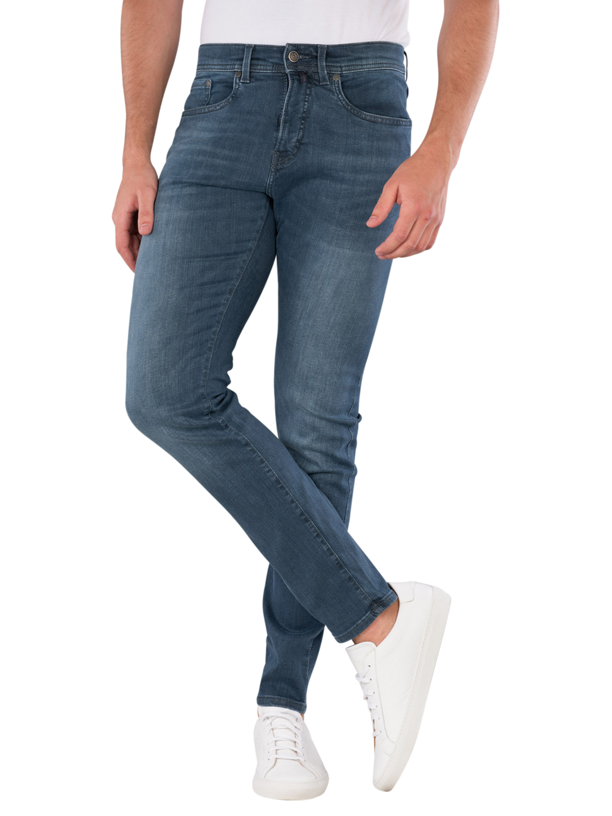 Die Pierre Cardin Lyon Jeans im Tapered Fit bieten einen modernen Schnitt mit einem engen Beinausschnitt und tiefem Bund. Die Jeans sind in einem mittleren Blau gehalten und verfügen über einen praktischen Reissverschluss. Mit einem Stretchanteil sorgen sie für Bewegungsfreiheit und Komfort. Die Five-Pocket-Design ermöglicht ausreichend Stauraum für persönliche Gegenstände. Pflegeleicht, waschbar bei 30°C im Schonwaschgang, sind sie eine praktische Wahl für den Alltag.