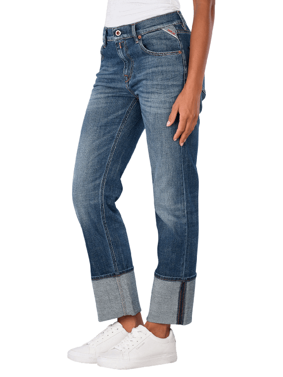 Die Replay Akeme Jeans in Mittelblau bieten eine gerade Passform mit tiefem Bund. Sie sind mit einem Reissverschluss ausgestattet und verfügen über fünf Taschen für praktischen Stauraum. Der Stretchanteil sorgt für hohen Tragekomfort und Bewegungsfreiheit. Diese Jeans sind ideal für den Alltag und lassen sich vielseitig kombinieren. Pflegeleicht, waschbar bei 30°C im Schonwaschgang, sind sie eine funktionale Ergänzung für jede Garderobe.