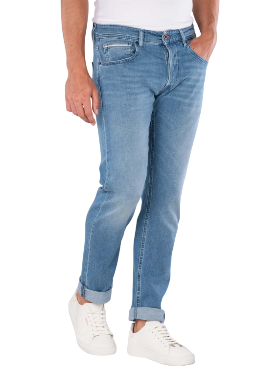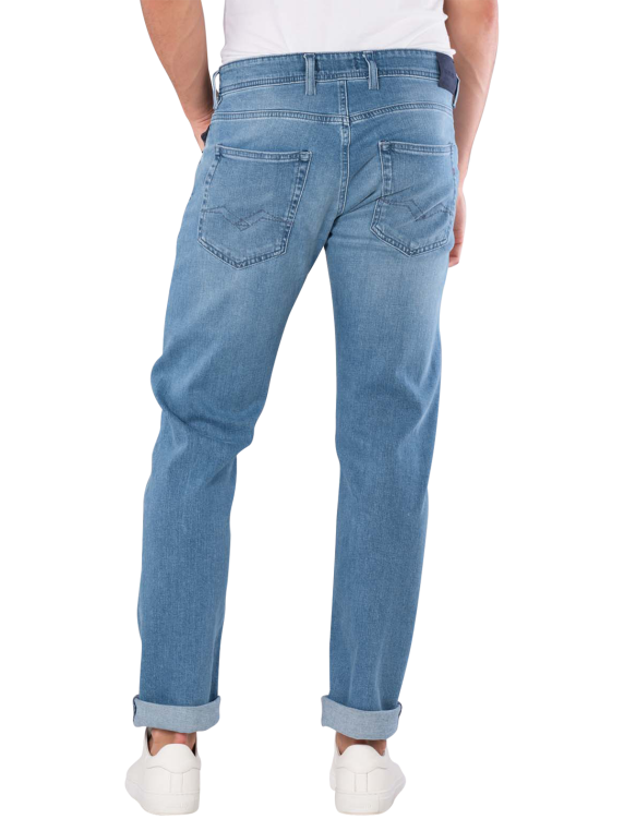Die Replay Grover Jeans in Straight Fit Medium Blue bietet eine optimale Mischung aus Stil und Funktionalität. Mit ihrer hellblauen Waschung und dem klassischen Five-Pocket-Design ist diese Jeans ideal für lässige Outfits. Der gerade Beinausschnitt und der mittelhohe Bund sorgen für eine bequeme Passform, während der Stretchanteil aus 99% Baumwolle und 1% Elasthan Bewegungsfreiheit garantiert. Pflegeleicht und in einem schonenden Waschgang bei 30°C waschbar, ist sie perfekt für den modernen Mann von heute.