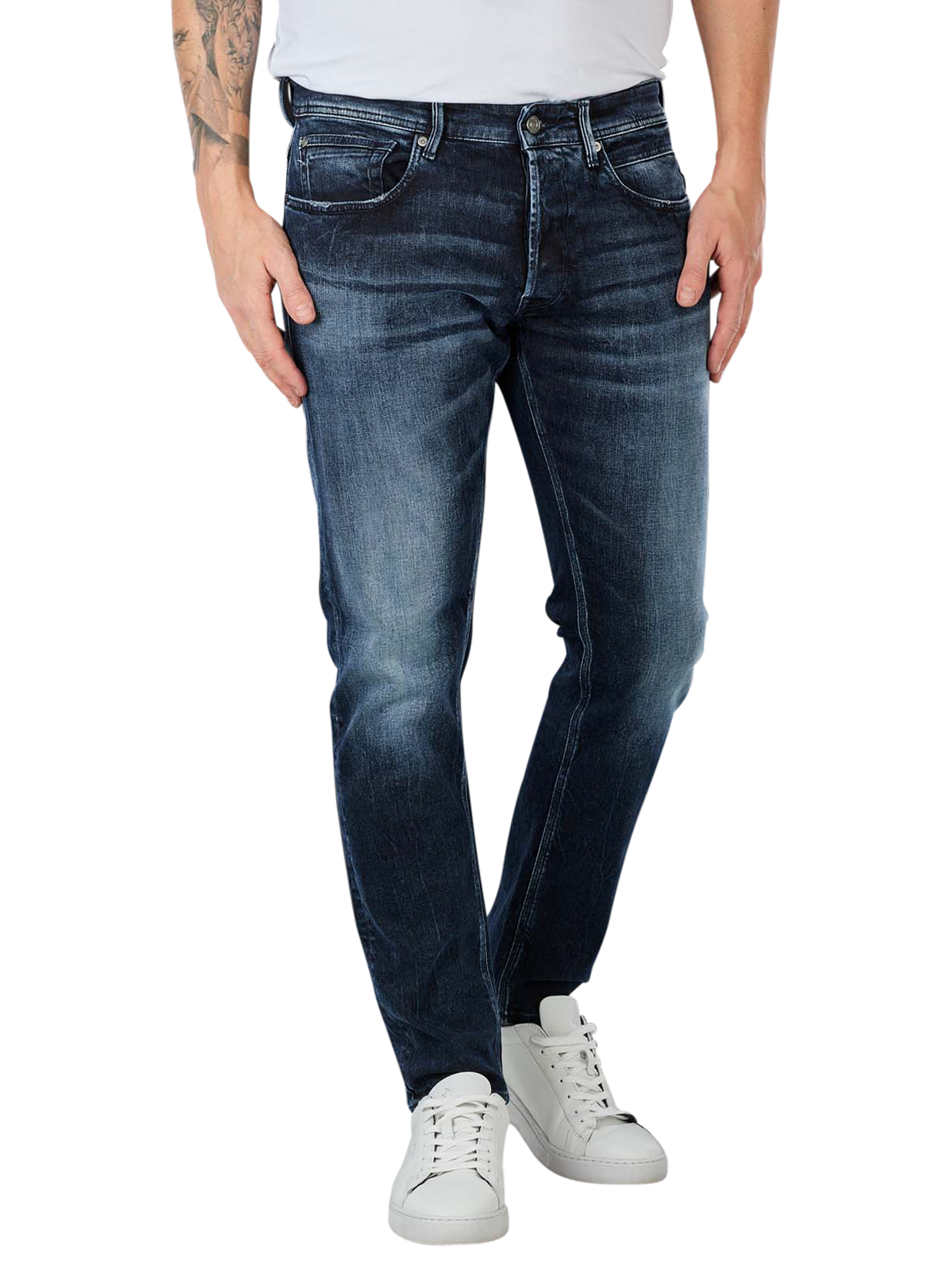 Die Replay Willbi Jeans Tapered Fit ist eine lässige Five-Pocket-Jeans in der Farbe Blue Black. Die Bundhöhe ist normal, die Beine sind oben locker geschnitten und verjüngen sich nach unten. Durch den Used-Look wirkt diese Jeans sehr lässig und ist somit vielseitig kombinierbar. Replay Jeans werden nach Biopack Organics Standards gefertigt. Es werden ausschliesslich natürliche und nachhaltig gewonnene Bio-Fasern verwendet.