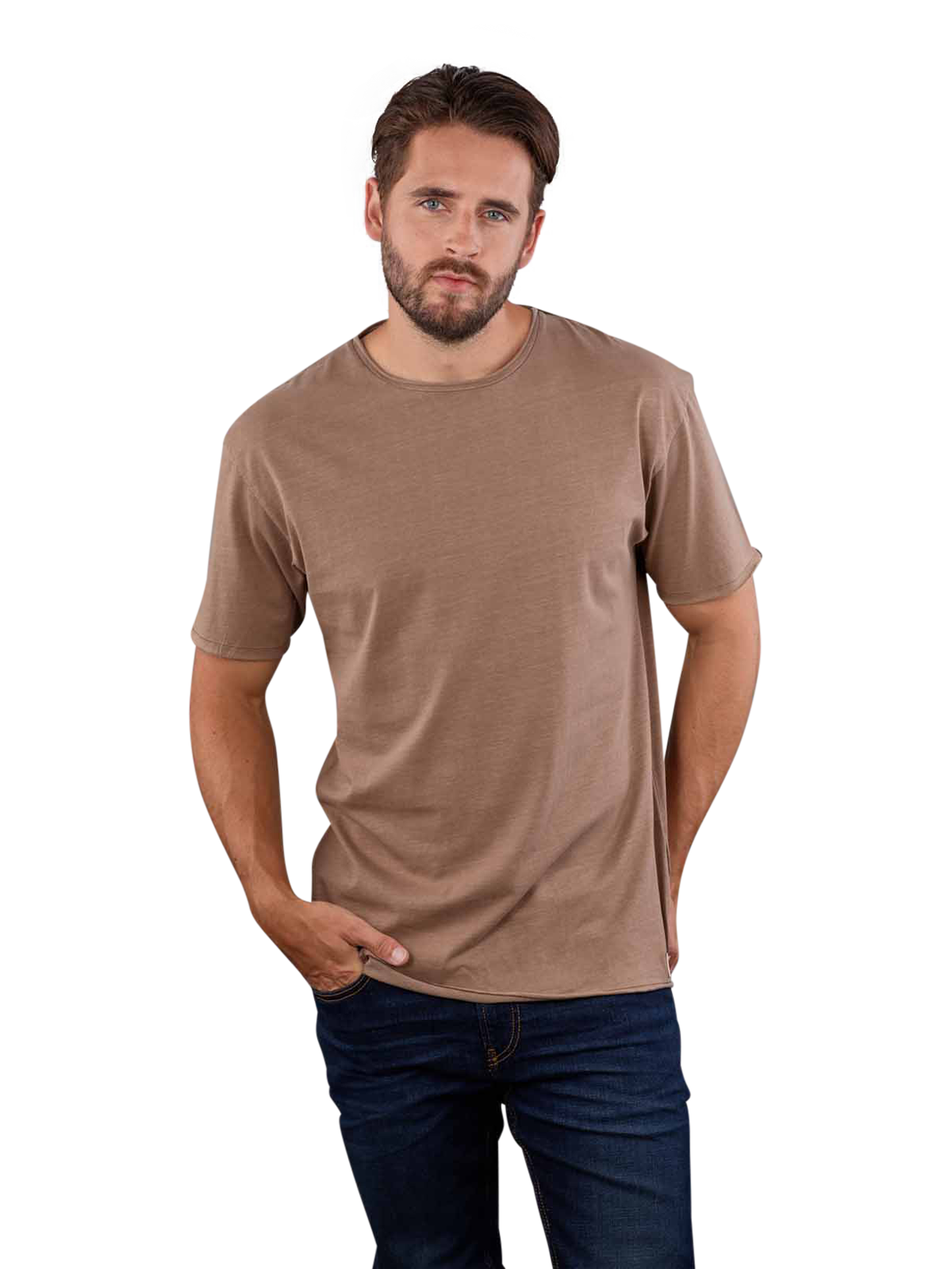 Das Scotch & Soda Raw Edge T-Shirt in Braun bietet einen entspannten Schnitt für Männer. Es verfügt über einen Rundhalsausschnitt und besteht aus 100% Baumwolle, was für hohen Tragekomfort sorgt. Das T-Shirt kann im Normalwaschgang bei 30 Grad gewaschen werden und sollte nicht gebleicht werden. Es gehört zur Kategorie der T-Shirts und ist ideal für legere Outfits geeignet.