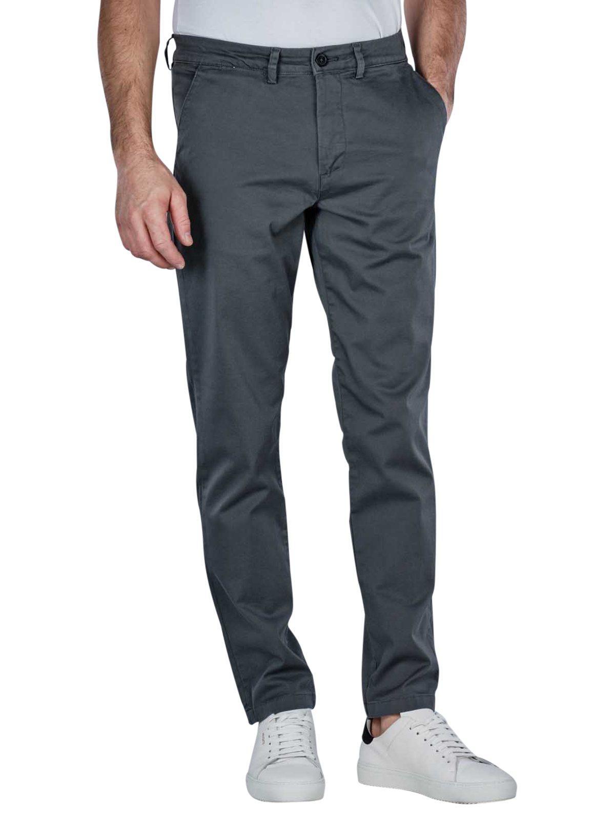 Die Selected New Miles Chino Slim Fit in der Farbe Dark Shadow ist eine stilvolle Herrenhose, die durch ihren engen, geraden Beinausschnitt überzeugt. Mit mittlerer Bundhöhe und aus dünnem, elastischem Stoff gefertigt, bietet sie optimalen Tragekomfort. Der Stoff besteht aus nachhaltiger Bio-Baumwolle, ergänzt durch Elastomultiester und Elasthan für zusätzlichen Stretch. Der Reissverschluss sorgt für einen klassischen Look. Die Chino ist ideal für den Alltag und pflegeleicht bei 40°C waschbar.