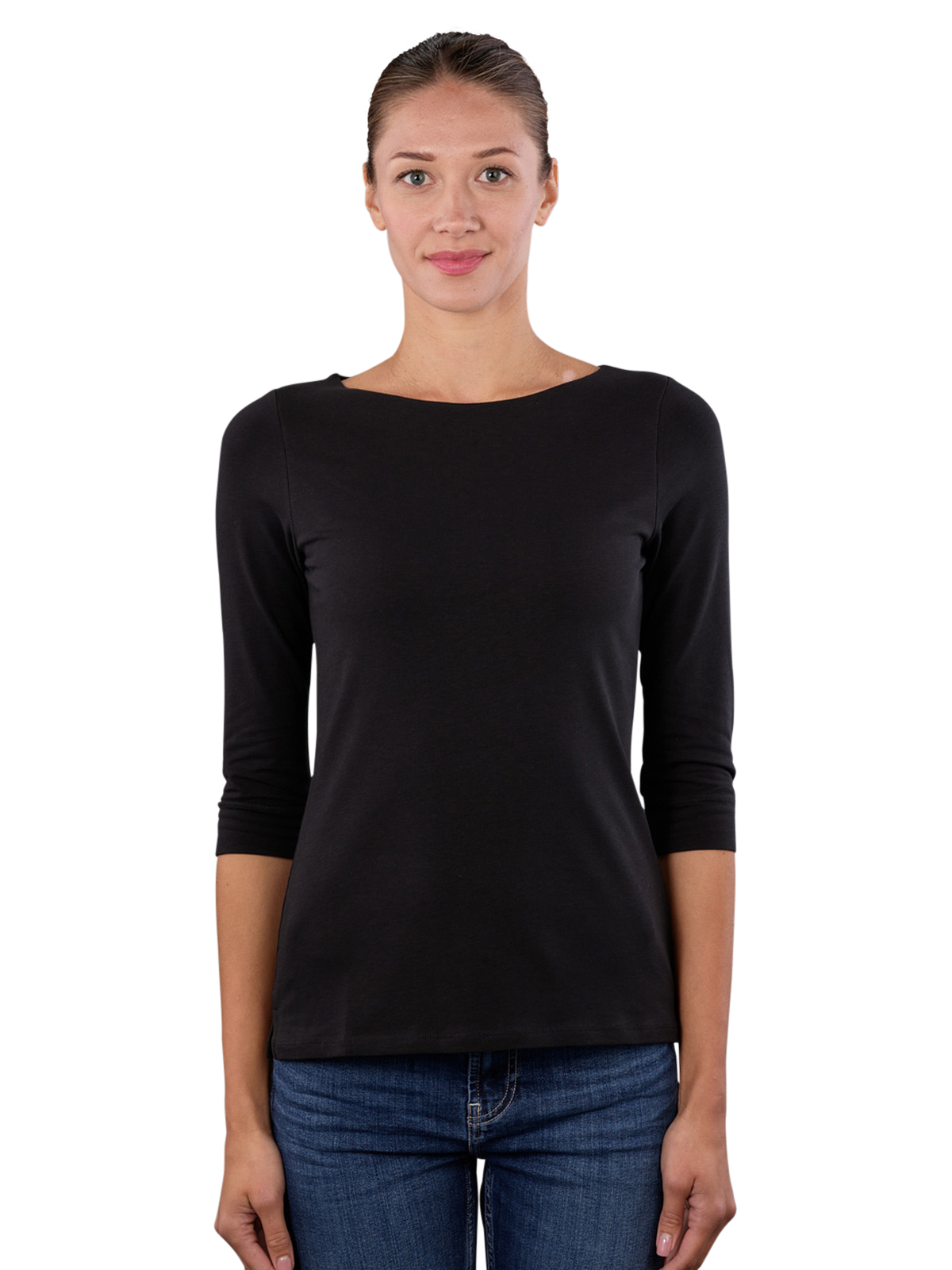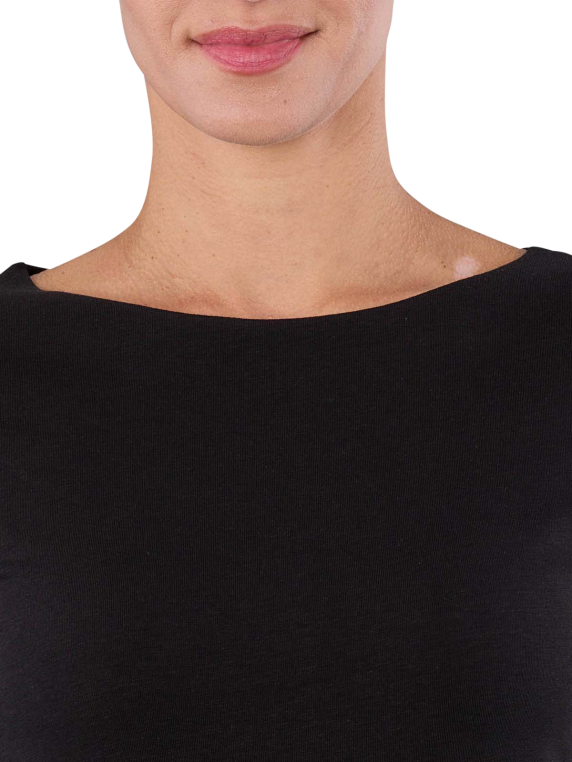 Das Thylie Bridget T-Shirt für Frauen besticht durch seinen eleganten 3/4 Arm und den klassischen Rundhalsausschnitt im Boat-Neck-Design. In zeitlosem Schwarz gehalten, ist es ein vielseitiges Basic für jede Garderobe. Die hochwertige Materialmischung aus 95% Baumwolle und 5% Elasthan sorgt für optimalen Tragekomfort und Passform. Pflegeleicht bei 40 Grad waschbar, fügt sich das T-Shirt ideal in den Alltag einer modernen Frau ein.
