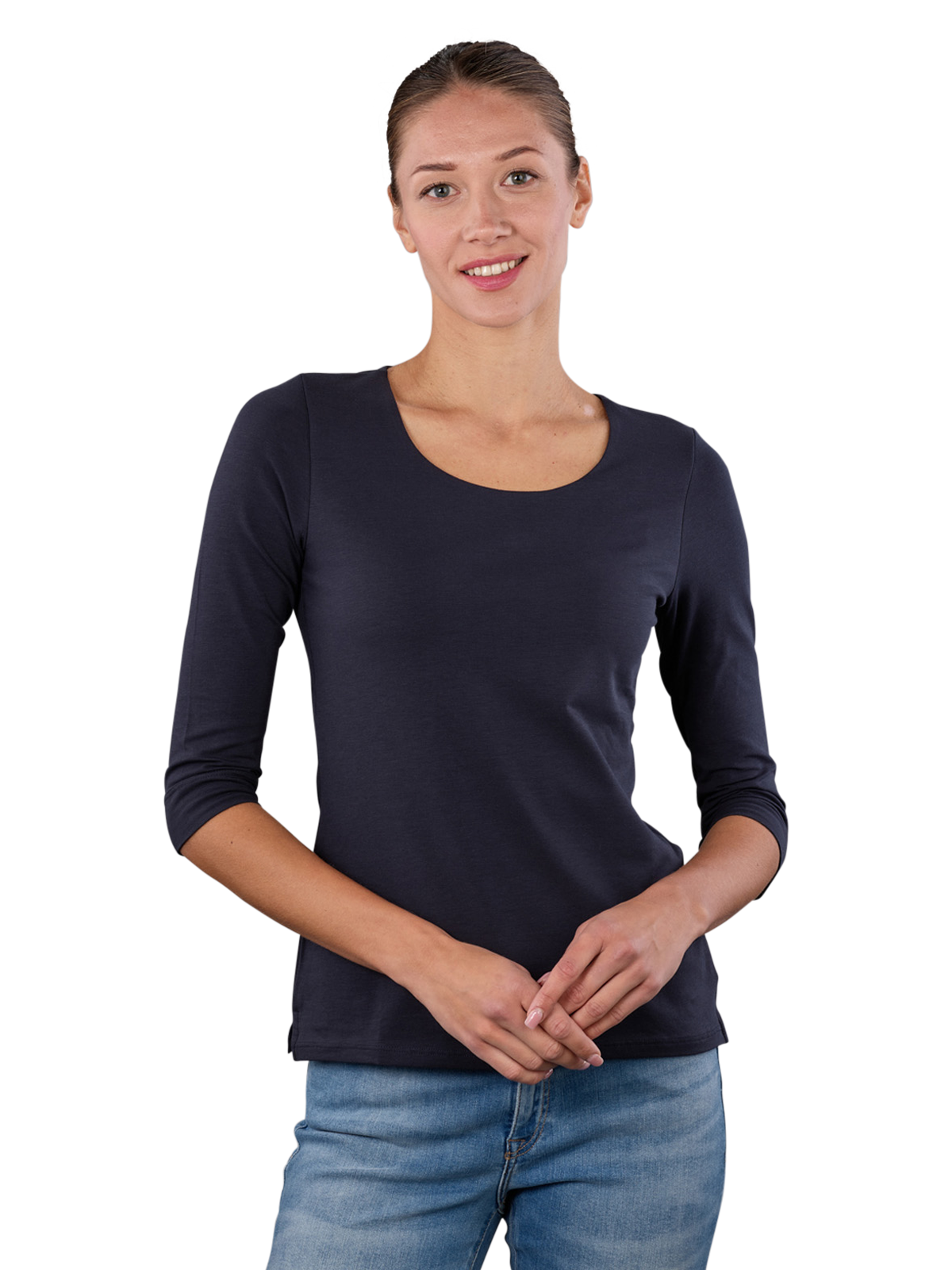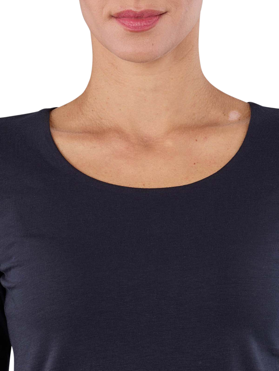 Das Thylie Rose T-Shirt für Frauen bietet mit seinen 3/4-Ärmeln und dem Rundhalskragen optimalen Tragekomfort. In der eleganten Night Blue Farbe Dunkelblau überzeugt es durch seinen Stil und die hochwertige Materialmischung aus 95% Baumwolle und 5% Elasthan, die angenehme Flexibilität garantiert. Pflegeleicht, da es im Normalwaschgang bei 40°C gereinigt werden kann, sollte es nicht gebleicht werden. Ein perfektes Basic für jeden Kleiderschrank.