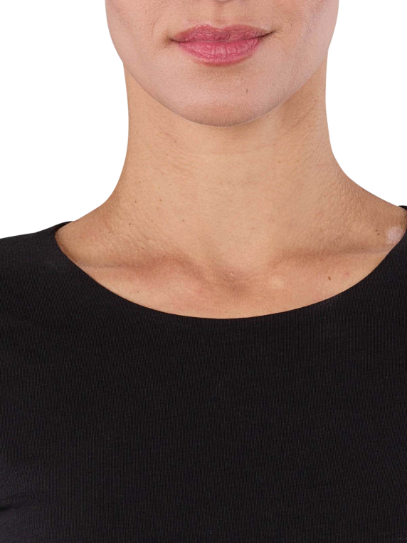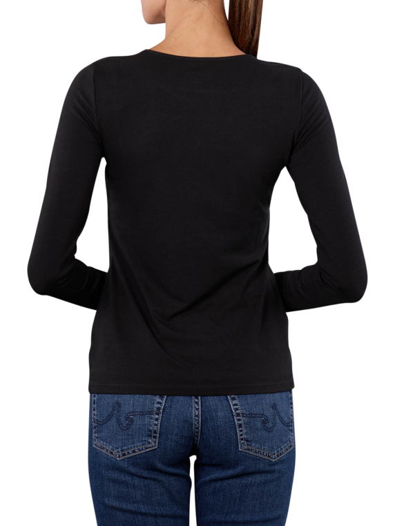 Das Thylie Salma T-Shirt für Frauen besticht durch seinen eleganten Rundhals-Design und langen Ärmel. In klassischem Schwarz gehalten, bietet es vielseitige Kombinationsmöglichkeiten. Hergestellt aus 95% Baumwolle und 5% Elasthan, garantiert es ein angenehmes Tragegefühl und eine hohe Formbeständigkeit. Pflegeleicht im Normalwaschgang bei 40 Grad zu reinigen und ohne Bleichen zu behandeln, ist dieses T-Shirt die perfekte Ergänzung für jede Garderobe. Perfekt für lässige oder schicke Outfits.