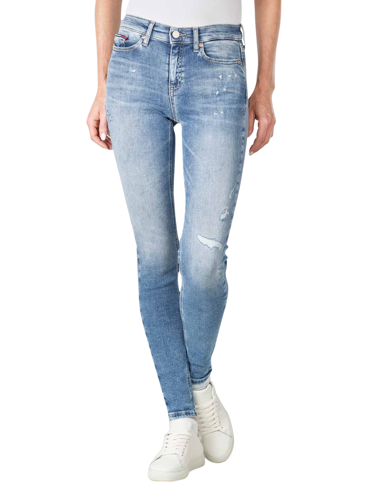 Im klassischen Tommy Jeans Stil kleidet Dich die Tommy Jeans Nora Mid Rise Skinny. Sie hat eine modische Waschung und ist aus recyceltem Material. Durch die Passform Skinny Fit, schmeichelt die Tommy Jeans Nora Mid Rise Skinny der Figur. Der mittelhohe Bund und der Stretchanteil sorgen für einen angenehmen Sitz.