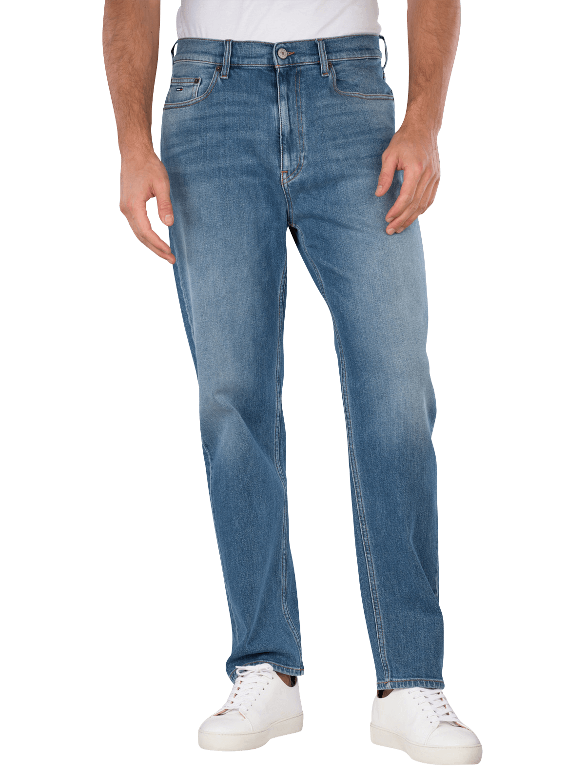 Die Tommy Jeans Sonny Tapered Fit Denim in Hellblau bietet einen mittelhohen Bund und einen engen Beinausschnitt. Die Jeans verfügt über einen praktischen Reissverschluss und ein klassisches Five-Pocket-Design. Mit ihrem Stretchanteil sorgt sie für Bewegungsfreiheit und Komfort. Die helle Waschung verleiht einen modernen Look. Pflegehinweis: Schonwaschgang bei 30°C, nicht bleichen. Diese Jeans kombiniert Stil mit Funktionalität.