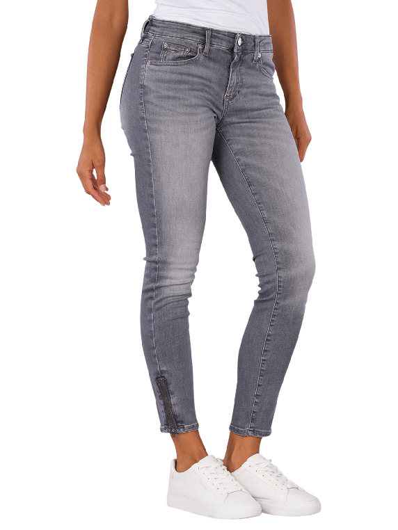 Die Tommy Jeans Sophie Skinny Fit Denim in Grau bietet eine enge Passform mit tiefem Bund. Diese Jeans ist aus dünnem, elastischem Material gefertigt, das Bewegungsfreiheit gewährleistet. Mit einem klassischen Five-Pocket-Design und einem Reissverschluss ausgestattet, eignet sie sich ideal für den Alltag oder legere Anlässe. Pflegeleicht bei 30°C im Normalwaschgang, ist sie eine umweltfreundliche Wahl für modebewusste Frauen.