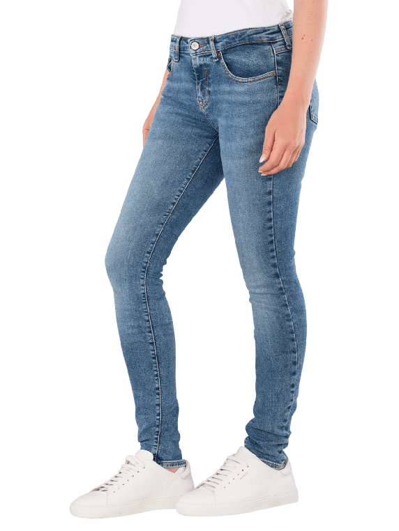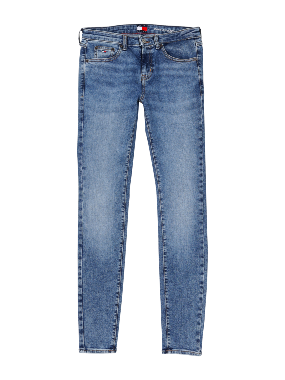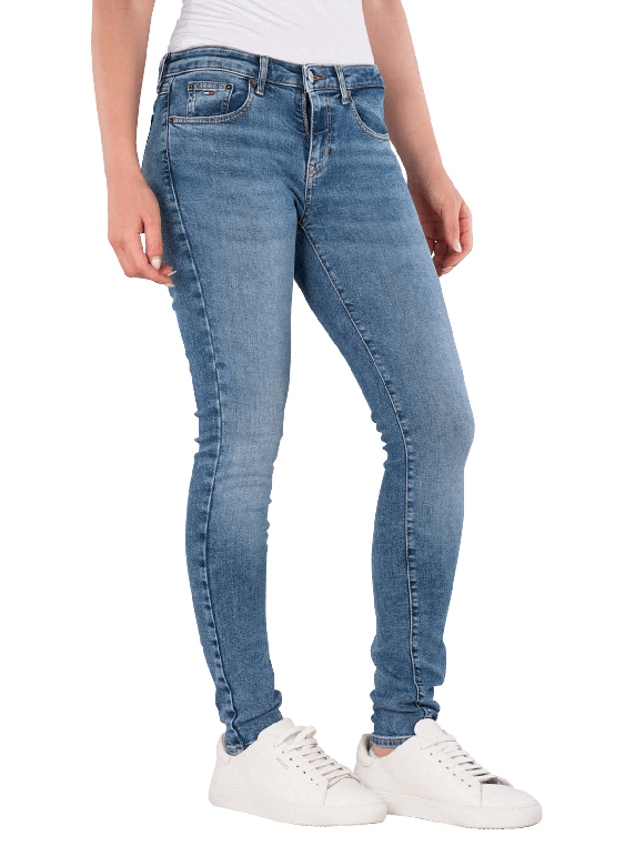 Die Tommy Jeans Sophie Skinny Fit Denim bietet eine modische Alternative für jede Gelegenheit. Mit ihrem engen Schnitt und dem tiefen Bund schmeichelt sie der Silhouette und sorgt für einen modernen Look. Die Hose in Hellblau/Mittelblau aus hochwertigem, regenerativem Baumwollmix (98% Baumwolle, 2% Elasthan) ist angenehm tragbar und flexibel dank des Stretchanteils. Die Five-Pocket-Detailierung und der praktische Reissverschluss runden das Design ab. Pflegehinweis: Schonwaschgang bei 30°C, nicht bleichen. Ideal für modebewusste Frauen!