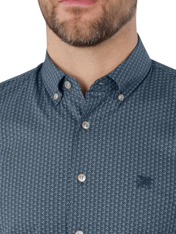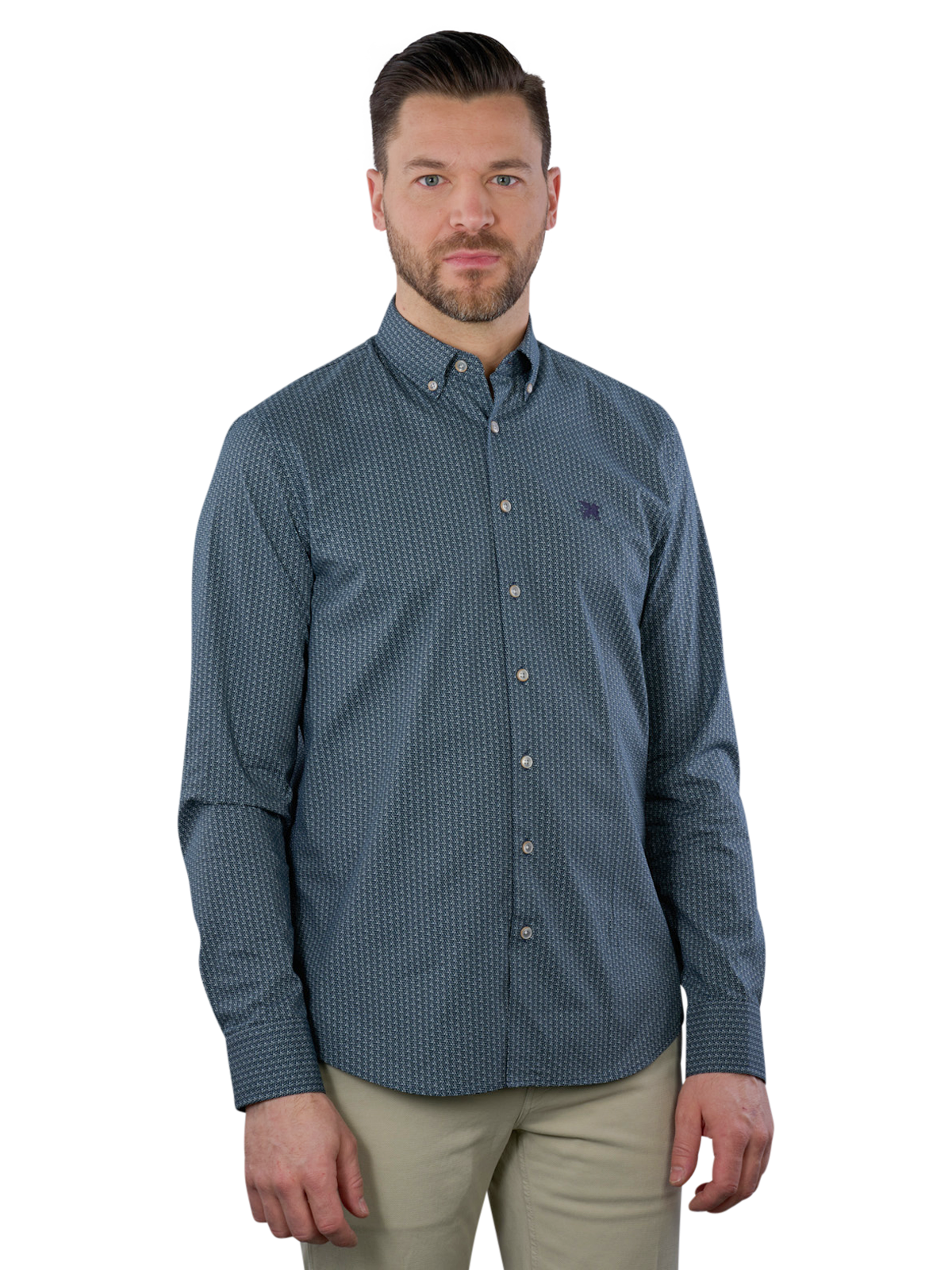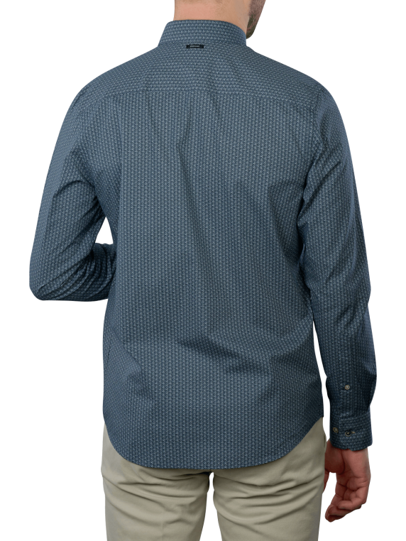 Entdecken Sie das Vanguard Long Sleeve Shirt mit minimalem Print in der stilvollen Farbkombination Weiss und Dunkelblau. Dieses lässige Hemd für Männer überzeugt durch seinen modischen Button-down-Kragen und eine bequeme Passform. Hergestellt aus 97% hochwertiger Baumwolle und 3% Elasthan, bietet es angenehmen Tragekomfort und Bewegungsfreiheit. Pflegeleicht und bei 30°C im Normalwaschgang waschbar, ist es die ideale Wahl für entspannte Anlässe oder das Büro. Verleihen Sie Ihrem Outfit das gewisse Etwas!