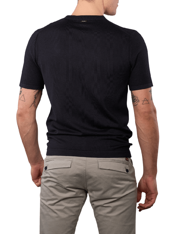 Das Vanguard Short Sleeve T-Shirt in edlem Dunkelblau überzeugt durch seinen lässigen Schnitt und hohen Tragekomfort. Hergestellt aus einer hochwertigen Mischung aus 50% Baumwolle und 50% Modal, bietet es eine weiche Haptik und hervorragende Atmungsaktivität. Der rundhalsige Kragen verleiht dem Shirt einen klassischen Look, ideal für den Alltag oder entspannte Freizeitaktivitäten. Für die Pflege wird ein Spezialschonwaschgang bei 30°C empfohlen. Mit diesem T-Shirt setzen Männer auf Stil und Bequemlichkeit!