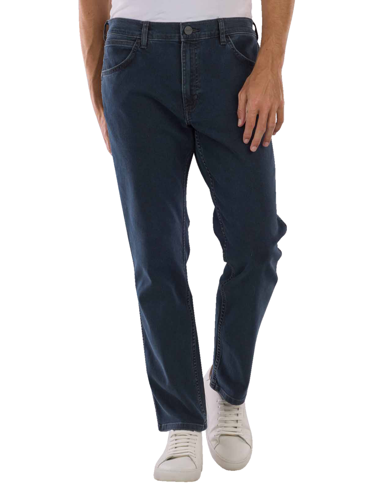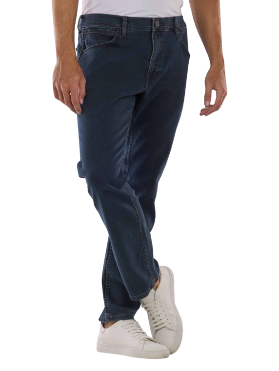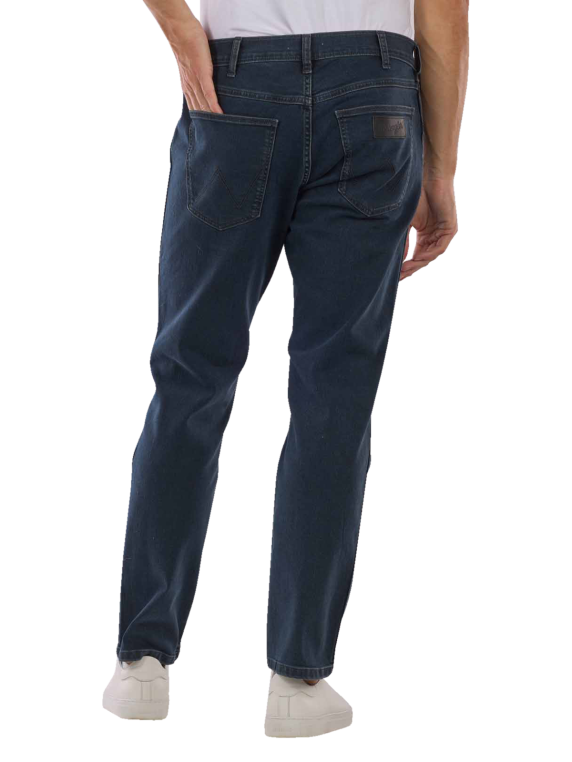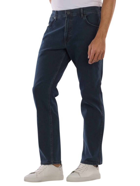 Die Wrangler Greensboro Jeans Regular Fit in der Farbe Iron Blue ist im klassischen Five-Pocket-Stil gehalten und kombiniert diesen mit einer mittleren Bundhöhe und einem gerade geschnittenen Bein. Hergestellt aus einer Baumwoll-Mischung mit Stretchanteil bietet die Herrenjeans nicht nur einen komfortablen Sitz, sondern auch ein hervorragendes Tragegefühl. Die Jeans lässt sich bei 30 °C im Schonwaschgang reinigen und ist somit pflegeleicht.