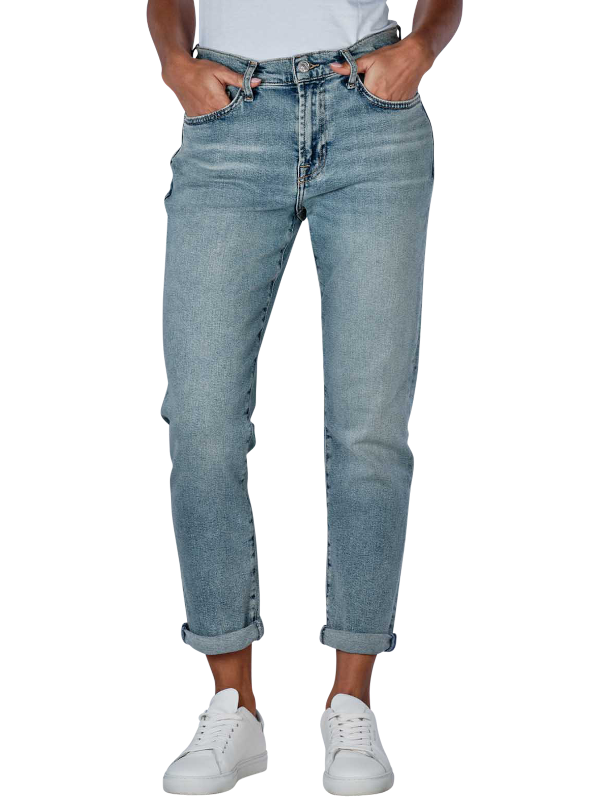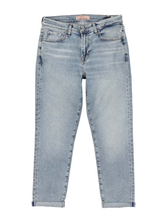 The 7 For All Mankind Josefina jeans for women combine a boyfriend fit with stylish details. With a light-coloured wash and a narrow leg cut, they have a fashionably casual look. The mid-rise waistband makes them comfortable to wear, while the stretch content offers freedom of movement. These five-pocket jeans impress with their standard fabric density and zip fastening. Care instructions: Normal wash cycle at 30°C, do not bleach. Material composition: 79% cotton, 11% modal, 9% elastomultiester, 1% elastane.