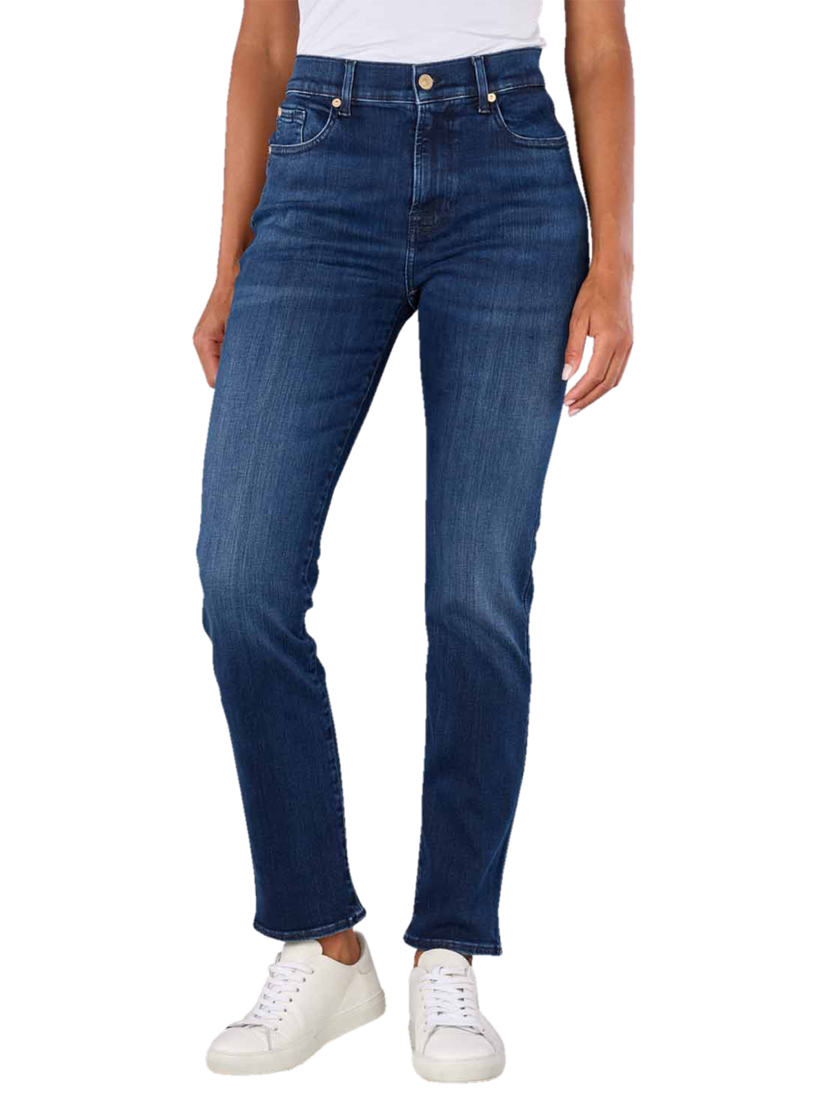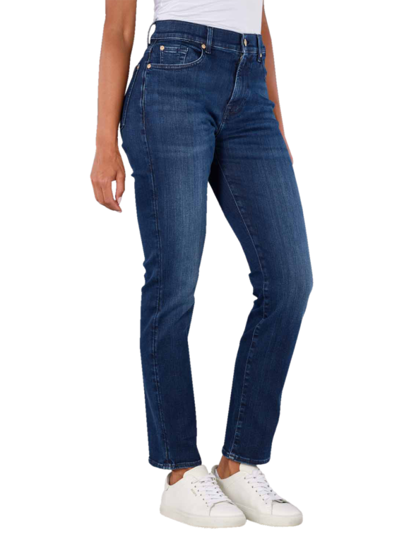 The 7 For All Mankind Relaxed Skinny Slim Jeans in Illusion La Joll feature a mid-rise waistband and a straight leg fit for women. These dark blue jeans in a slim fit/boyfriend style are made from a high-quality stretch material. They feature the classic five-pocket style and a zip fastening. Made from 92% cotton, 6% polyester and 2% elastane, they are robust and comfortable. Washable at 30°C on a normal cycle.