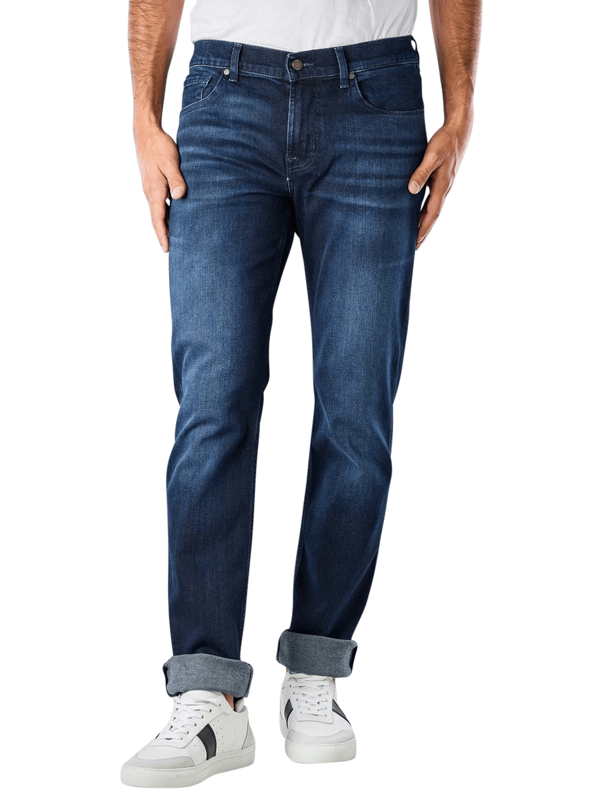 Thanks to the Better Cotton Initiative, the cotton in the 7 For All Mankind Slimmy Luxe Jeans Performance Eco is arguably the most sustainable in the world. Blended with synthetic fibres, modal and elastane, the straight-cut jeans always fit perfectly. The classic five-pocket jeans style is complemented by a zipper with button. Very special details on the dark jeans are the small label on one back pocket and the 7 on the waistband.