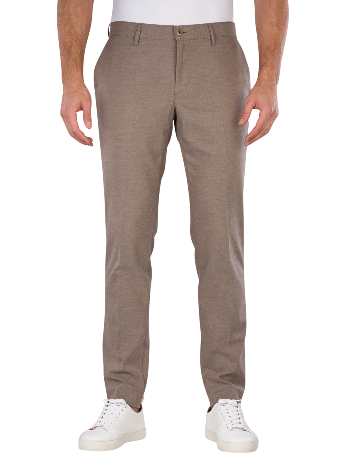 The Alberto Rob Chino Slim Fit Wool Touch in Beige offers a slim fit with a mid-rise waist. This chino pant is made from a thin, stretchy fabric that allows for freedom of movement. The zipper ensures a secure fit. It is suitable for formal occasions or casual outfits. Easy to care for in a gentle wash cycle at 30°C, it meets the OEKO-TEX STANDARD 100.