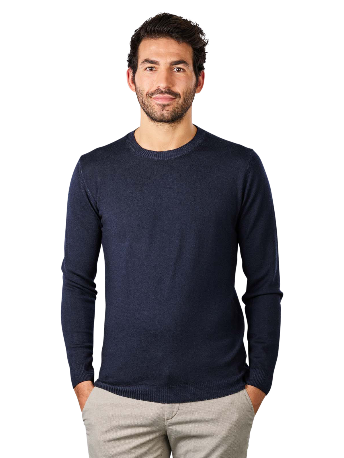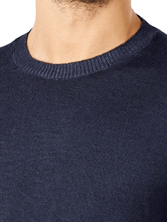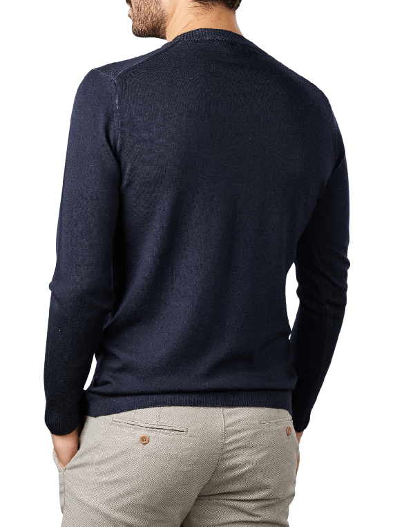 The Cinque Cirussel Crew Neck is a regular fit jumper for men. It comes in the shade navy-blue. It combines business and casual style. The knitted jumper in a plain pattern has a round neck. As it is made of 100% wool, it should only be hand-washed with care. Washing machine and dryer would damage the material. Dry cleaning is also not advised.