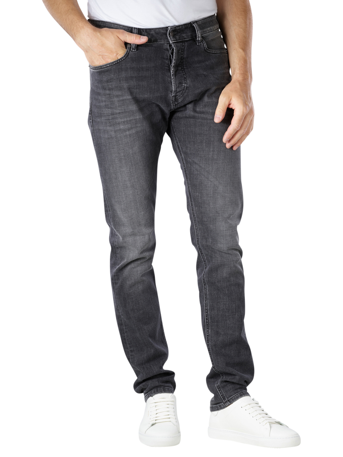 The Diesel D-Luster Slim Fit jeans in Anthracite are made from sturdy denim with a stretch content and are comfortable to wear in casual settings with their mid-rise waistband and comfortable, snug fit. Intense washes and optical seat creases also give the men's jeans a stylish look. The jeans are also very easy to care for, as they can be washed at 30 °C on a gentle cycle without any worries.