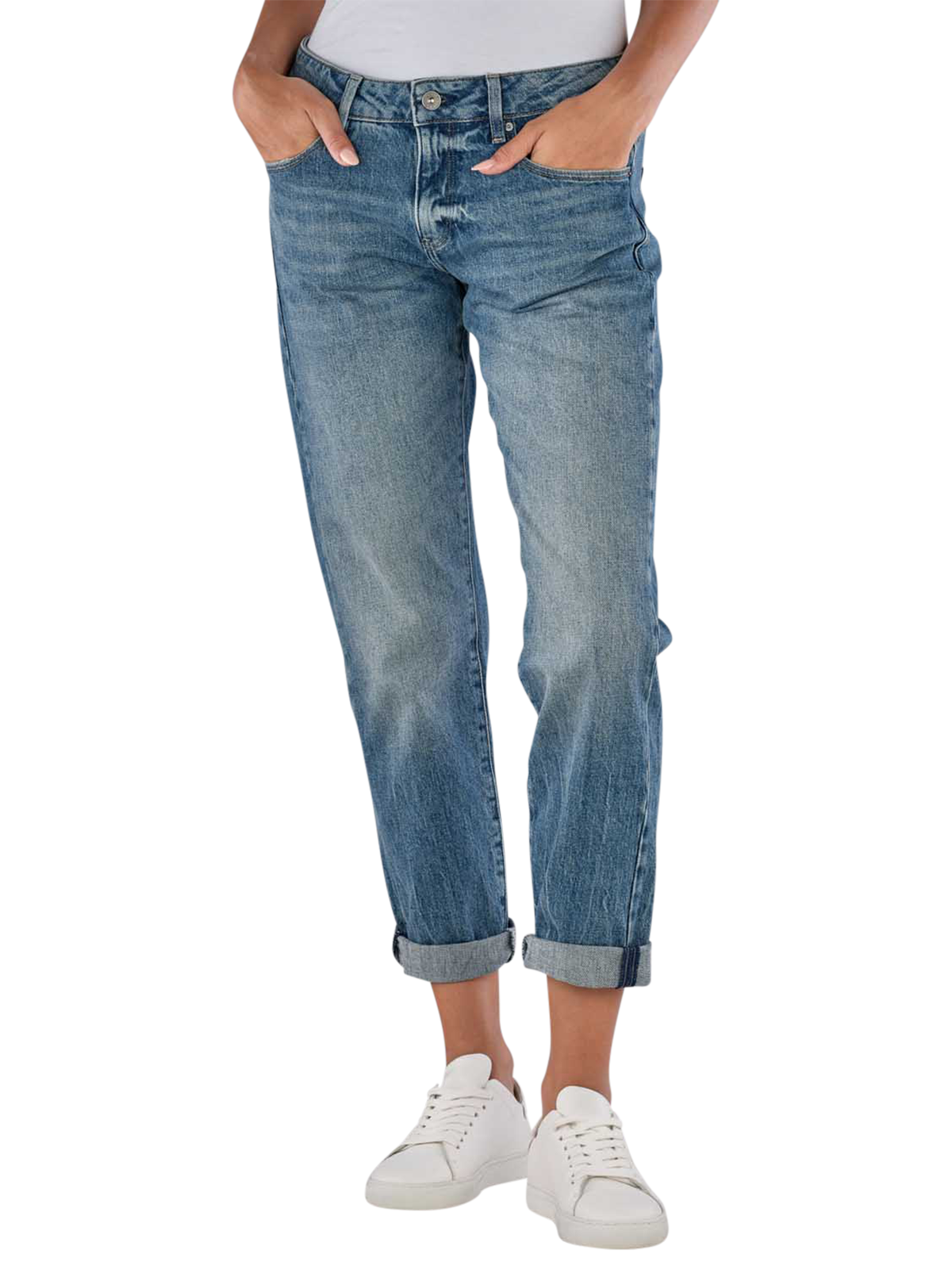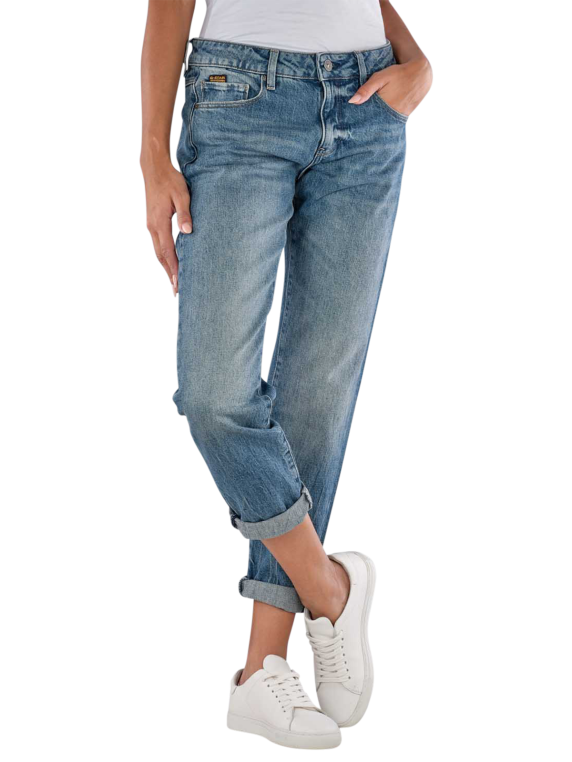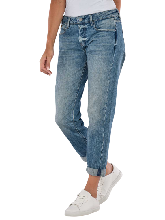The G-Star Kate jeans for women come in a relaxed boyfriend style with a straight marled leg. In a fashionable mid-blue colour, they have a mid-rise waist and a classic five-pocket look. The thicker fabric is made from 99% cotton and 1% elastane, which creates a pleasant stretch effect. Fastened with a zip, the jeans feature a medium wash and are washable at 30°C.