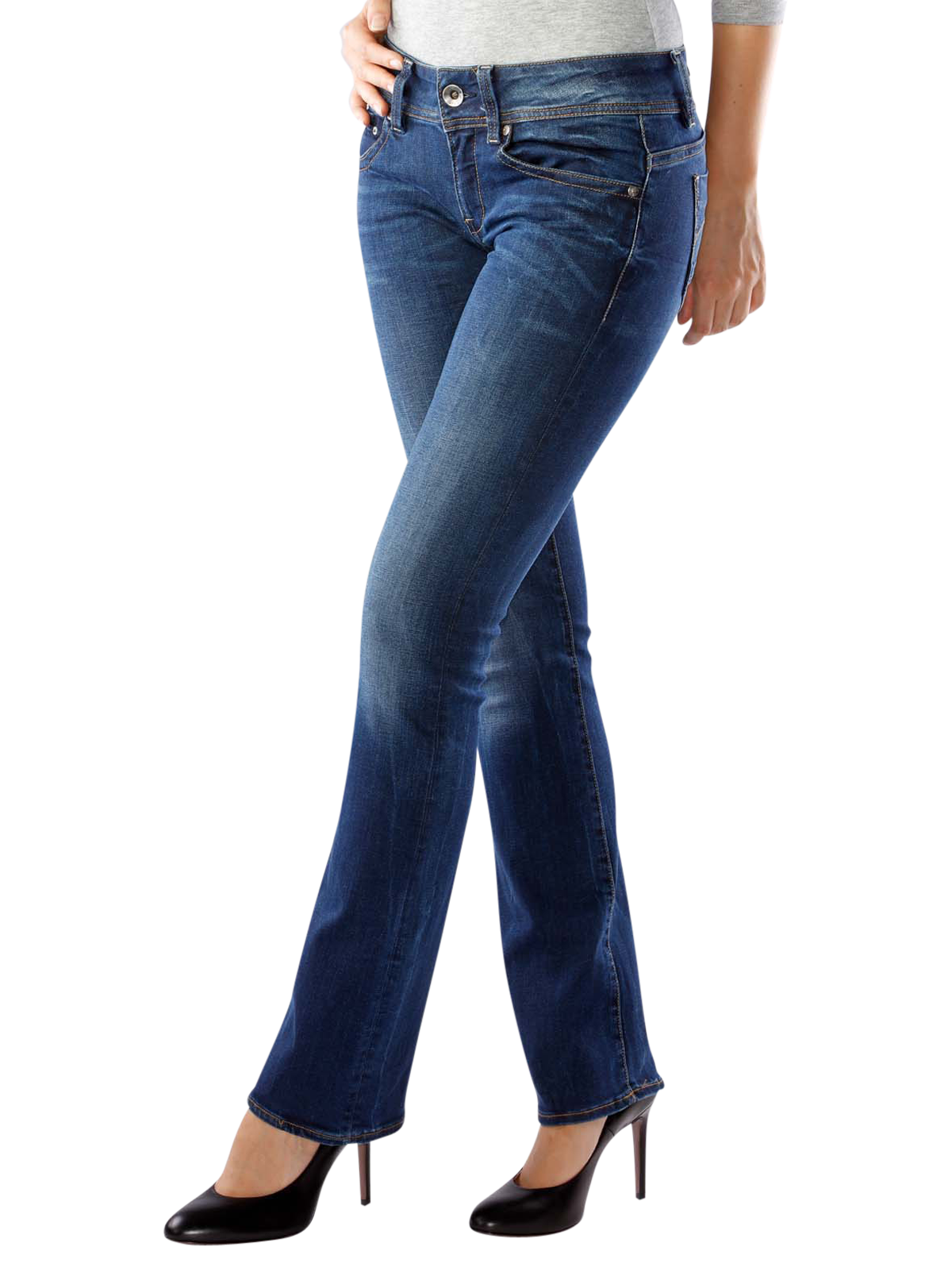 Featuring this season's popular flared silhouette, these jeans boast a bootcut style that flatters and fits the hips and thighs. Made from soft denim, they are super-stretchy with modern heavy stitching that brings the 5 pocket style bang up to date.