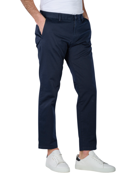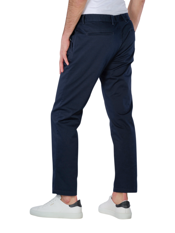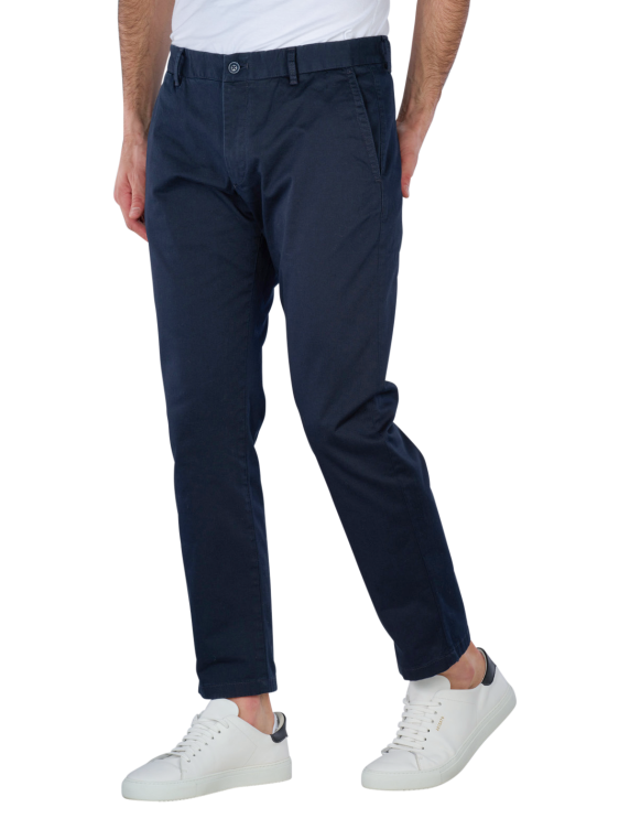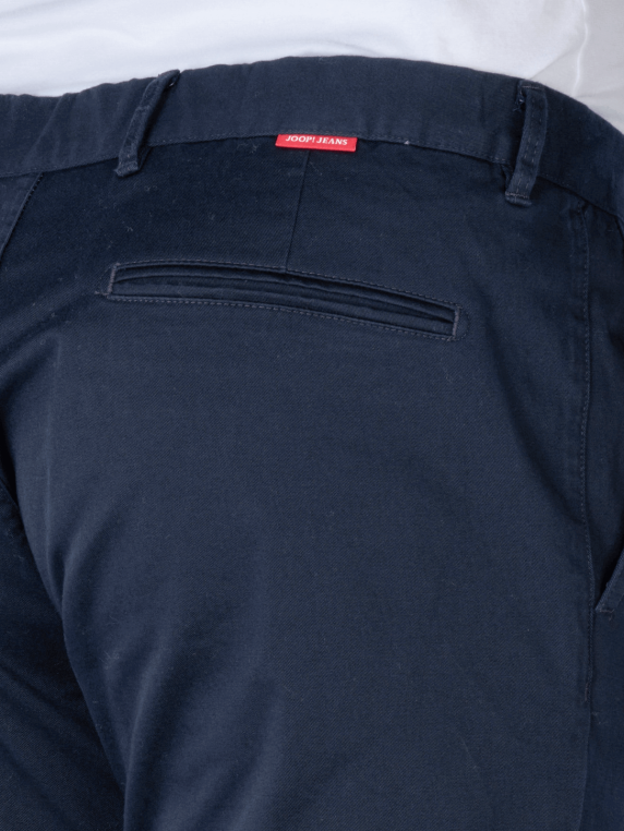 The Joop Matthew Chino Modern Fit in dark blue are stylish trousers for men, ideal for a variety of occasions. The slim-fit leg cut in combination with the mid-rise waistband creates an elegant silhouette. Made from 97% cotton and 3% elastane, these chinos offer light stretch comfort. They are easy to care for, can be washed on a gentle cycle at 30°C and should not be bleached. The zip fastening rounds off the design.