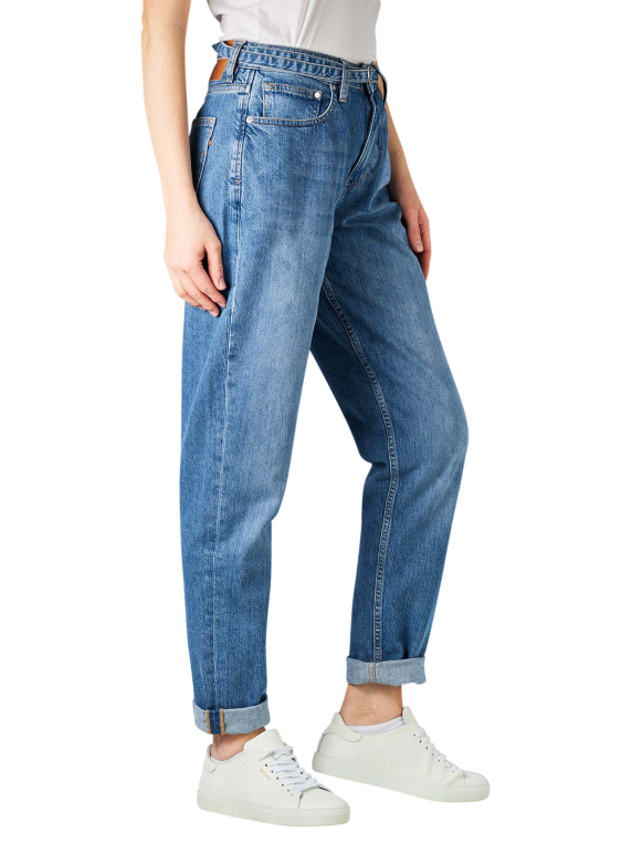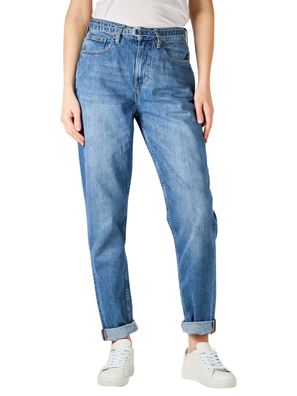 The Kuyichi Nora Jeans Loose Tapered Fit in the colour Medium Blue is a pair of equally fashionable and casual five-pocket jeans. The jeans with a normal waistband height are made of 100% organic cotton. The legs are cut wide at the top and taper towards the bottom. In production, the Kuyichi company attaches great importance to sustainability and fair trade. To reduce greenhouse gas emissions, only organic cotton is used for production.