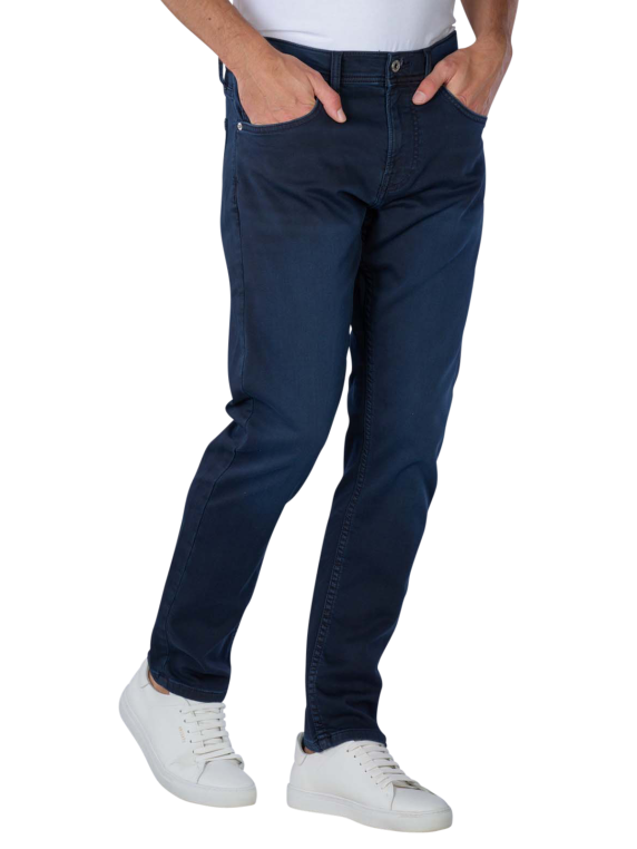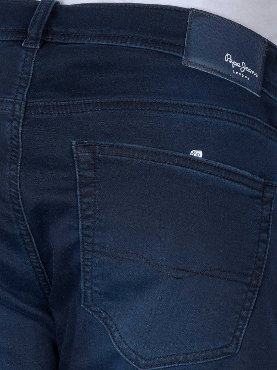 The Pepe Jeans Track Slim Fit Gymdigo in dark blue is ideal for men who want to combine modern style with comfort. These straight-leg jeans with a mid-rise waist offer a slim fit and are made from a lightweight, stretchy fabric blend. Featuring a classic five-pocket design and zip fastening, they are versatile and easy to care for. The dark wash emphasises the elegance of these jeans, perfect for everyday wear.