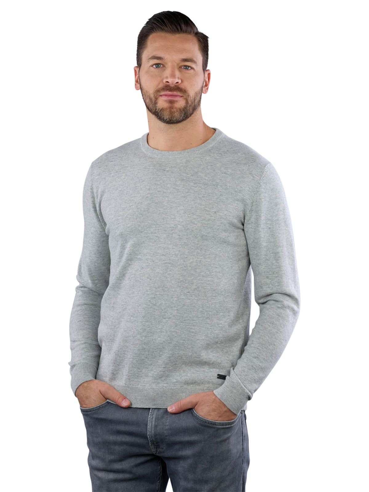The Pierre Cardin Knit Pullover in grey is a stylish piece of clothing for men. This cosy crew neck jumper fits perfectly into the jumper category and is ideal for those who want to avoid hoods. Made from 100% cotton, it offers exceptional comfort. It can be washed on a gentle cycle at 30 degrees. Please note that the jumper should not be bleached.