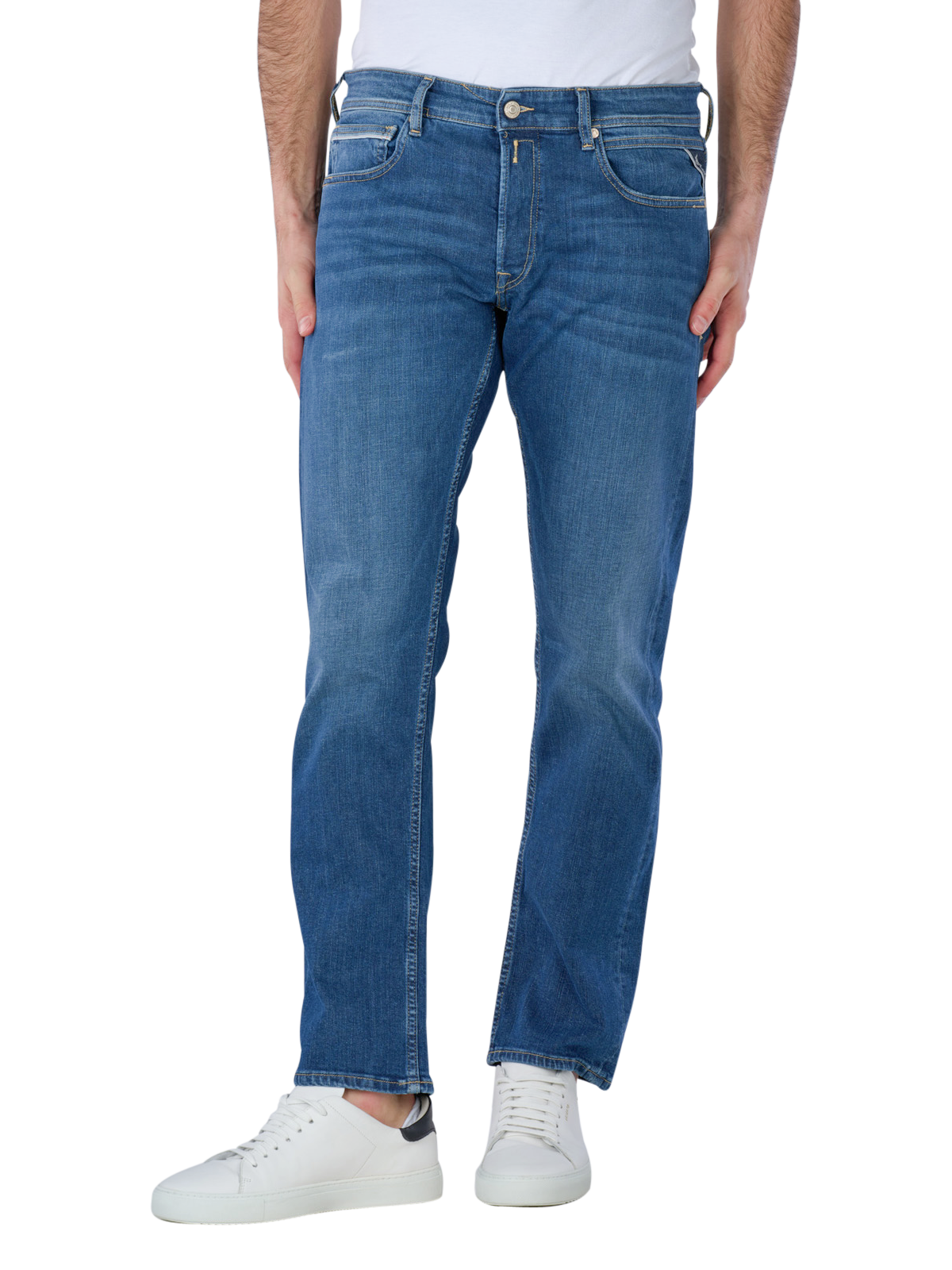The Replay Grover jeans in a straight fit impress with their mid blue colour and timeless design. The straight leg cut and mid-rise waistband offer optimum comfort for men. These five-pocket jeans with a button placket combine classic elements with modern style. The stretch content provides additional freedom of movement, while the medium wash creates a casual look. Made from 99% cotton and 1% elastane, these jeans can be washed at 30°C on a gentle cycle. Ideal for any occasion!