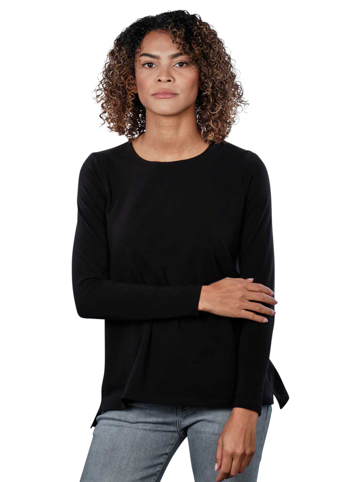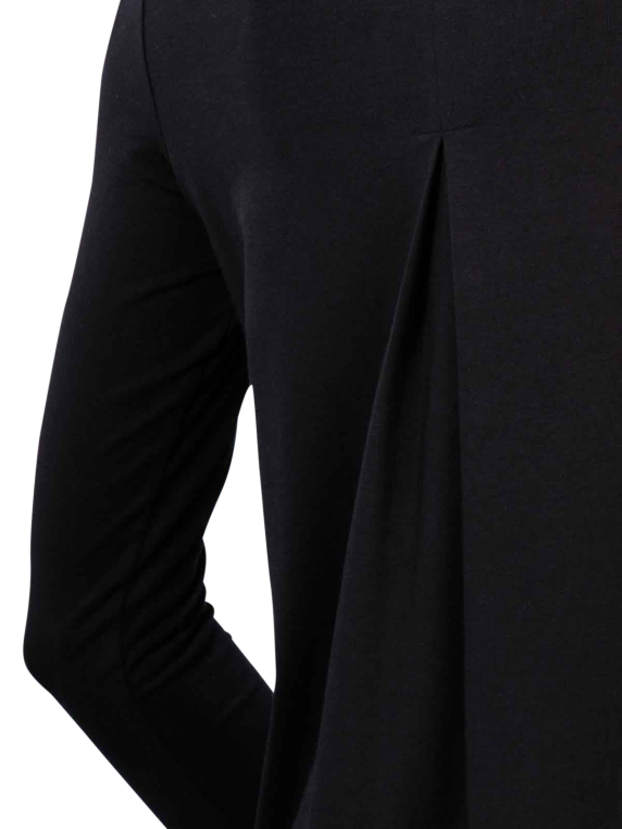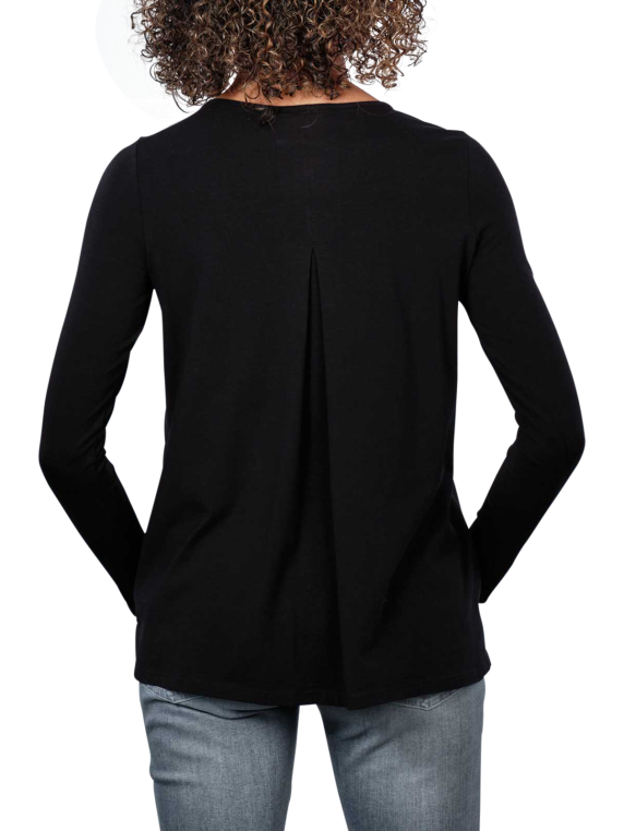 The Thylie Anabel long sleeve R-neck T-shirt in the elegant colour black is ideal for women who love stylish basics. It belongs to the jumpers and jumpers category and features a classic round neck collar. Made from 95% cotton and 5% elastane, it is extremely comfortable to wear. Robust for everyday wear, it is suitable for the normal wash cycle at 40°C and should not be bleached.