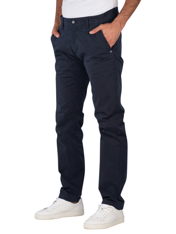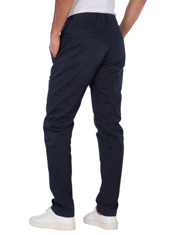 The Tom Tailor Tapered Chino in Sky Captain Blue offers a modern, tapered fit with a low to medium waistband. The pants are made from a standard thickness fabric with stretch, providing freedom of movement. The zipper allows for easy on and off. These chinos are suitable for various occasions and can be combined in versatile ways.