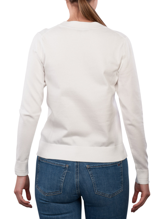 The Tommy Hilfiger V Neck sweater in Ecru features a classic V-neckline and is made from a blend of organic cotton and polyamide. It is suitable for various occasions and can be easily combined. The sweater can be washed at 30°C on a gentle cycle and is easy to care for. The simple color and timeless cut make it a versatile piece in any wardrobe.