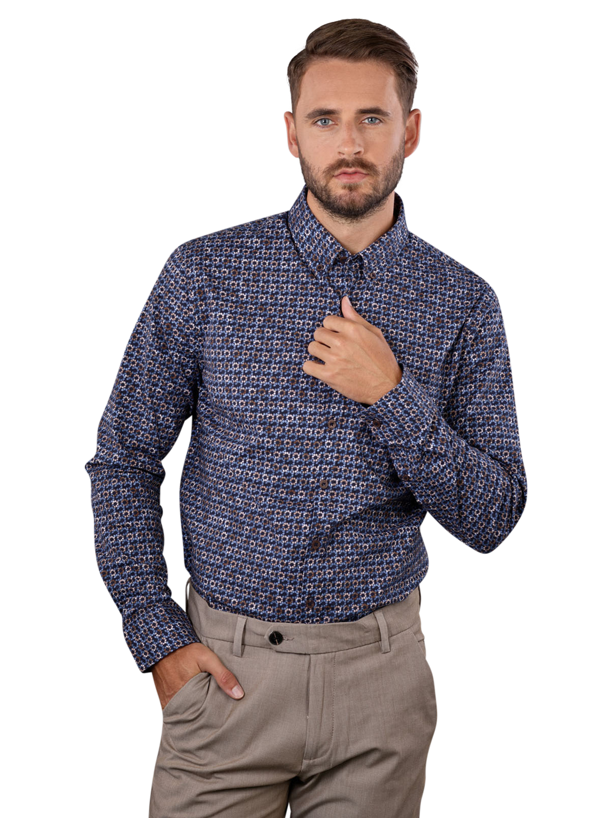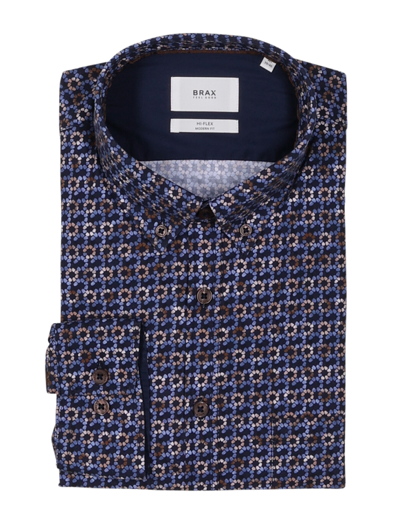 The Brax Button Down Daniel Shirt for men is a stylish button-down shirt in elegant dark blue. It features a chest pocket for practical storage of small items. Made from 97% cotton and 3% elastane for optimum comfort, it is ideal for everyday wear. The shirt keeps its shape perfectly on a gentle wash cycle at 30°C and should not be bleached. Perfect for both leisure and the office.