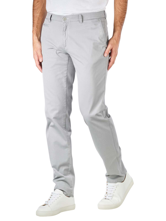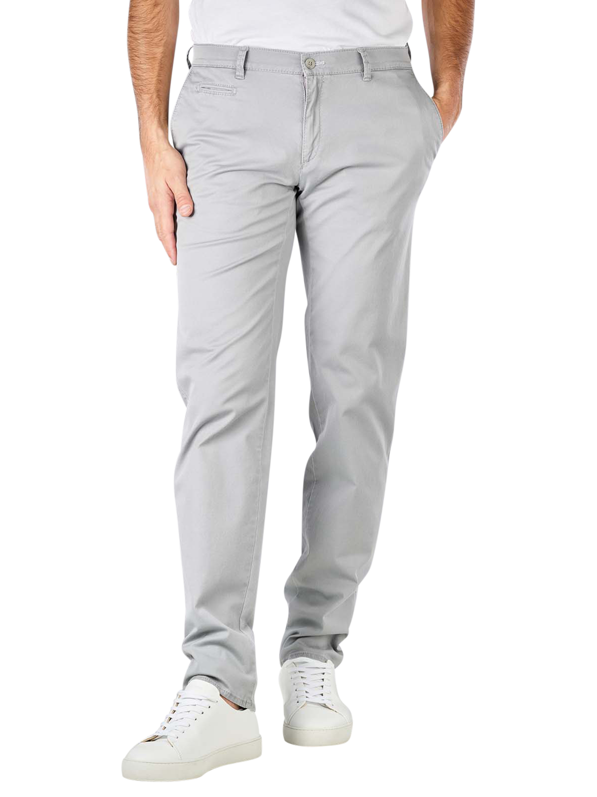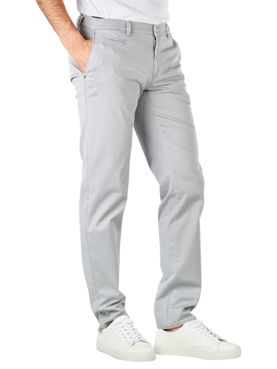 The classic Brax Chino Fabio in the Slim Fit has the fashionable colour Silver. For a more environmentally friendly production, the ECO programme BLUE PLANET ensures that the use of chemical detergents, water and energy can be reduced. These chinos are made from a thin fabric with 96% cotton and 4% shaping elastane. The leg cut and thighs are straight, and the waistband is medium high.