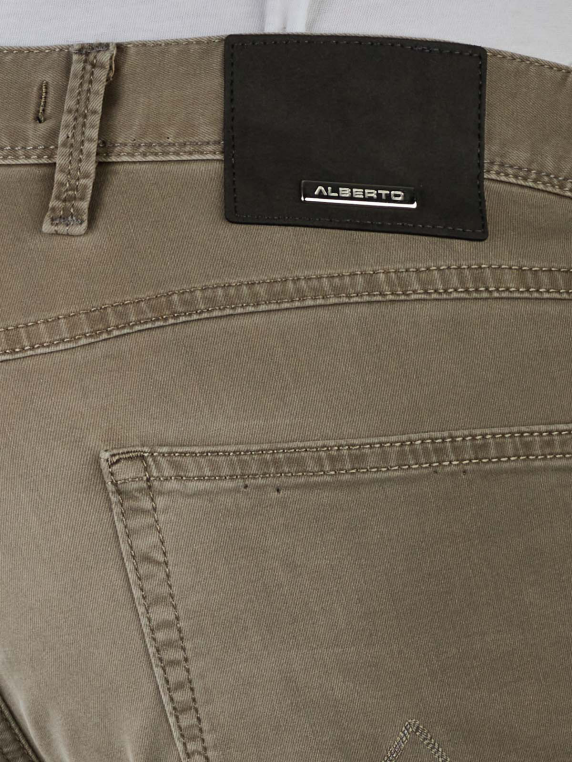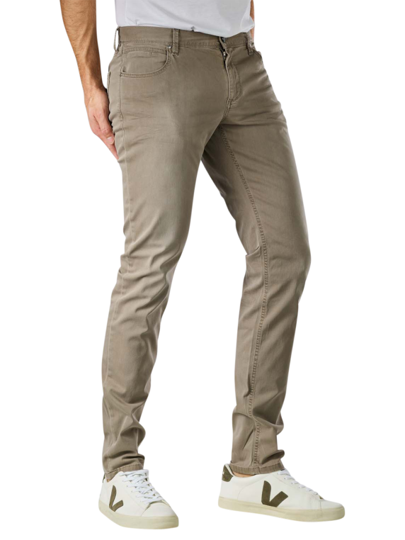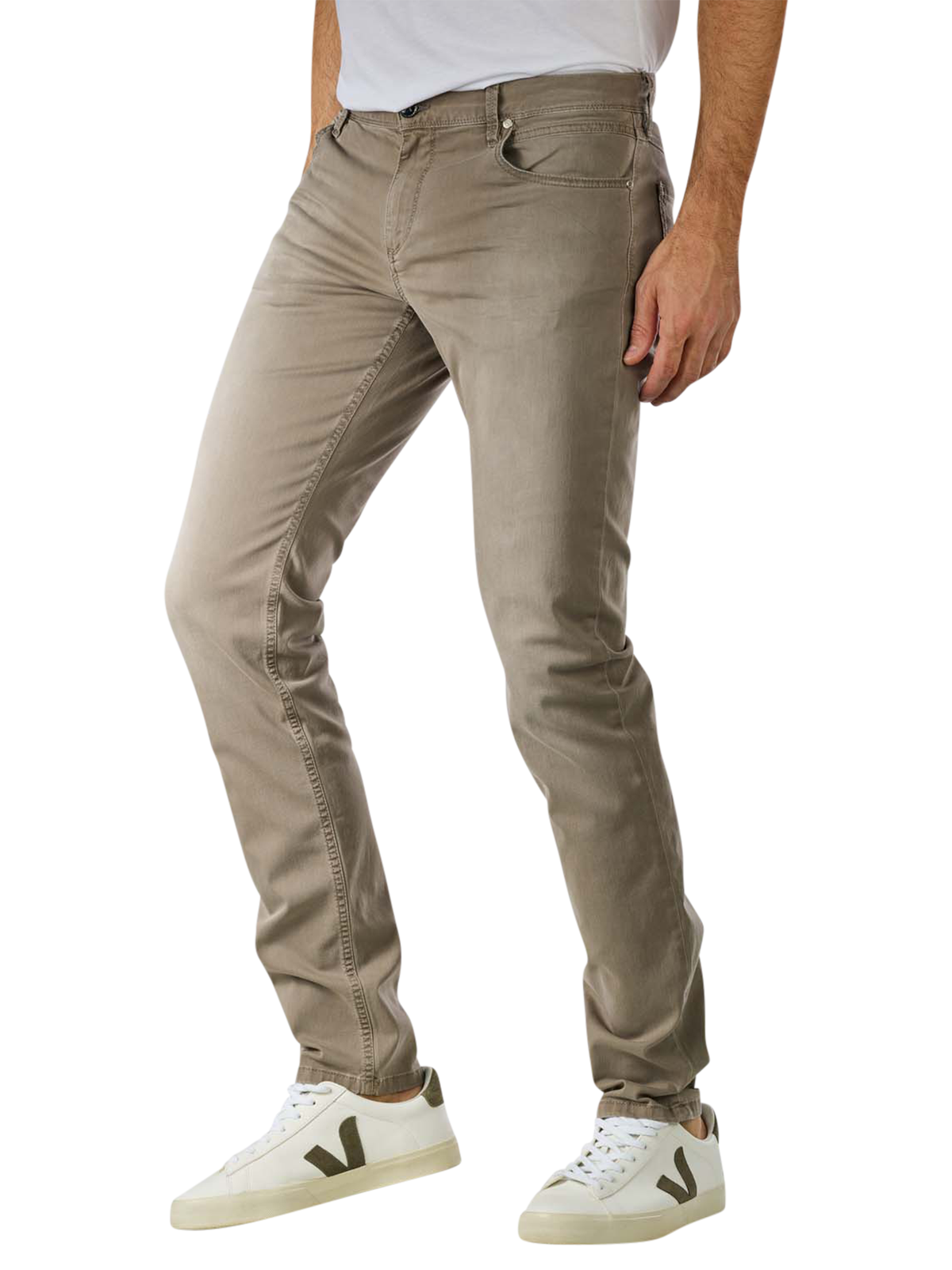 The Alberto Robin Jeans Tapered Fit is a casual five-pocket jeans with a normal waistband height. The legs are cut slightly wider at the top and slightly tapered towards the bottom. The jeans in the colour denim beige are made of a material mix with a high stretch content. The fabric is slightly thinner overall, making the jeans particularly suitable for the milder seasons. Alberto manufactures according to strict ecological guidelines, so the company makes a valuable contribution to environmental protection.