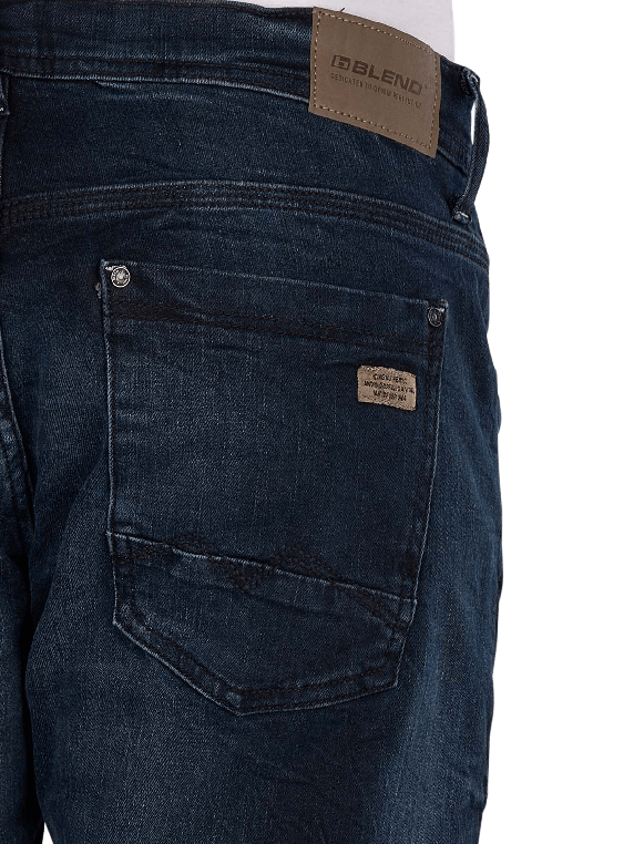 The Blend Twister Jeans Slim Fit Blue features a straight leg cut and a mid-rise waist. The dark wash gives the jeans a modern look. With a stretch content, it provides freedom of movement and comfort. The five-pocket design allows for practical storage. These jeans are designed for men and are suitable for various leisure activities. Easy to care for, machine washable at 40°C on a normal wash cycle.