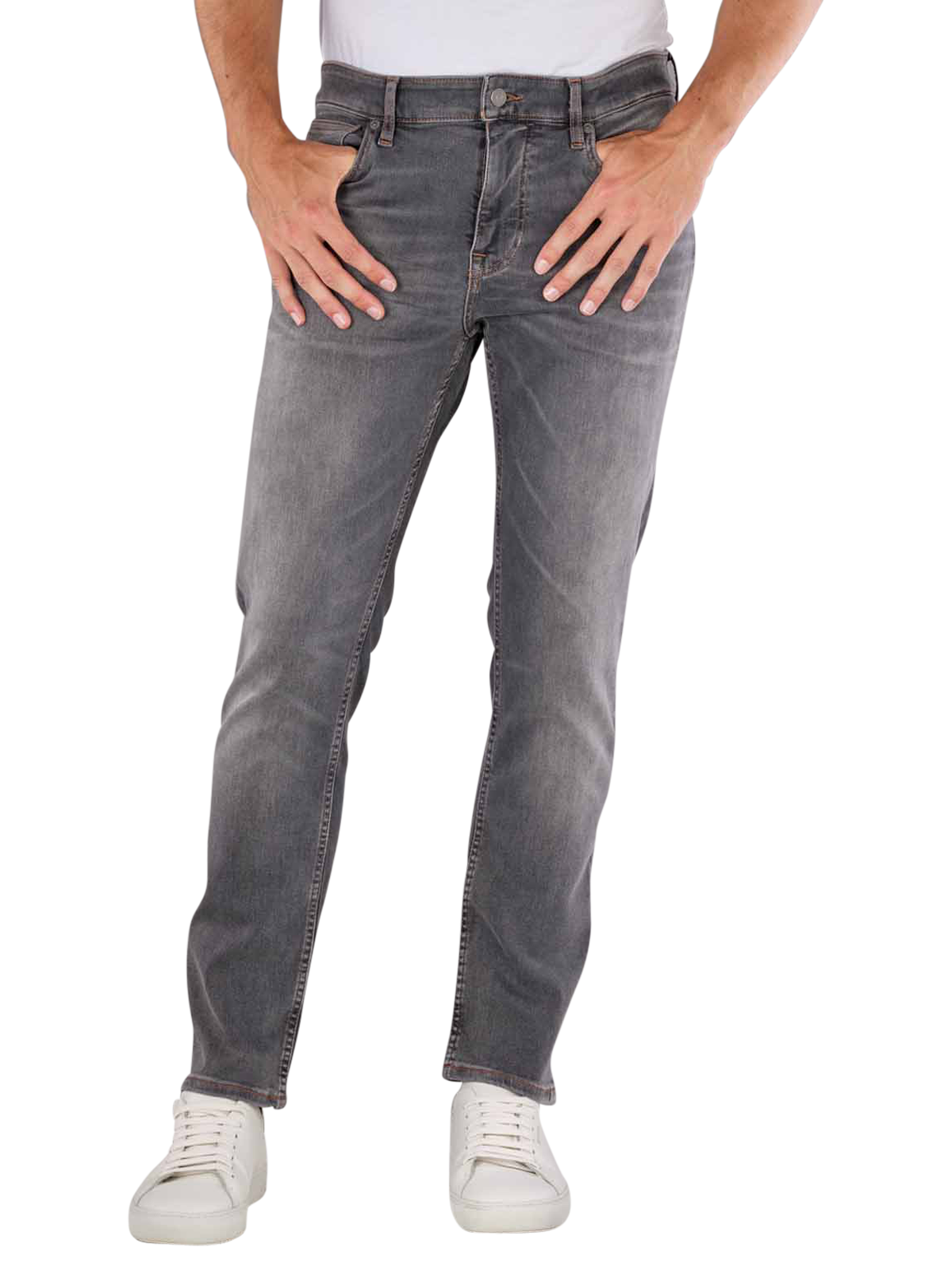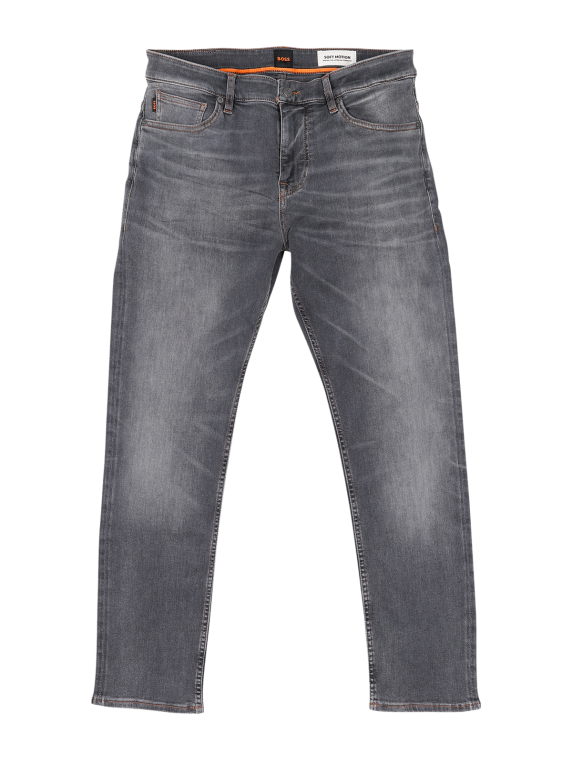 The Boss Orange Delaware jeans in dark grey offer a slim fit with a straight leg and mid-rise waist. They are made from 92% cotton, 6% elastomultiester and 2% elastane for comfortable stretch. These five-pocket jeans are ideal for men looking for stylish, hard-wearing trousers. Care instructions: Gentle wash at 30°C, do not bleach. Perfect for everyday wear with standard fabric thickness and grey wash.