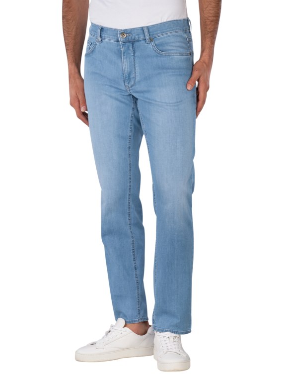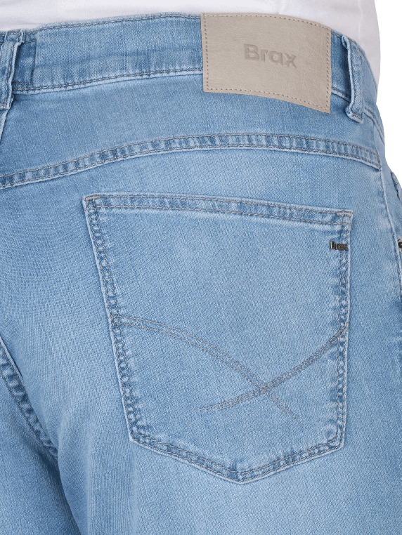 Brax Cooper jeans in a straight fit offer optimum comfort thanks to the stretch content and straight leg shape. The light blue wash gives them a modern look, while the typical five-pocket design offers plenty of room for essentials. With a mid-rise waist and standard rise, these jeans are suitable for casual leisure activities or everyday office wear. Easy to care for on a gentle wash cycle at 30°C. Ideal for men who value style and functionality