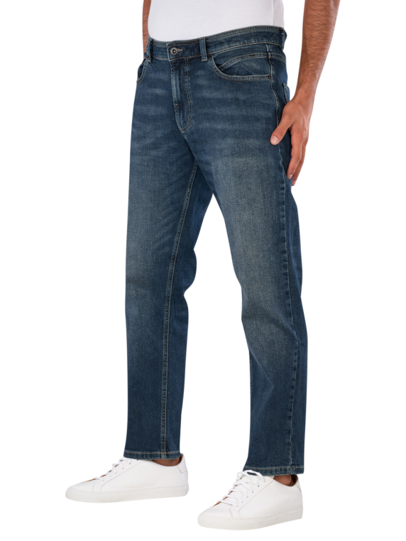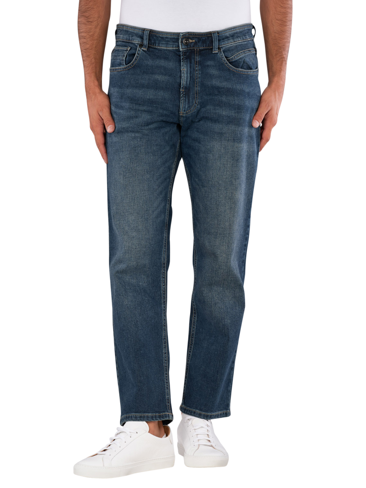 The Camel Active 5-pocket jeans in relaxed fit offer a wide leg cut and a medium rise. The jeans are in an appealing medium blue/dark blue and feature a zipper. With their stretch content, they guarantee high wearing comfort and freedom of movement. Ideal for everyday use, they are easy to care for and can be washed at 40°C on a gentle cycle. These jeans combine style and functionality.