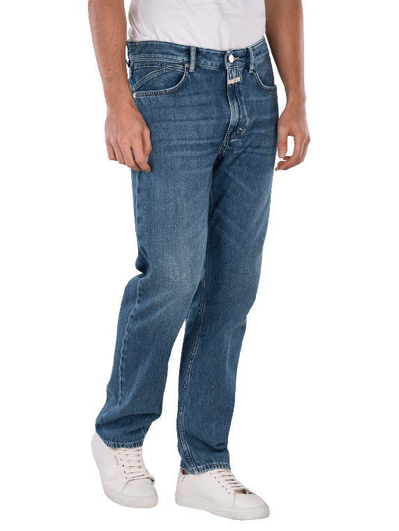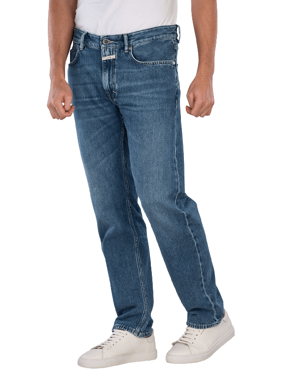 The Closed Cooper True Jeans in Straight Fit features a straight leg cut and a mid-rise waist. It is in a classic medium blue and is made of 100% cotton without any stretch. This five-pocket jeans has a zipper and is suitable for various leisure activities. The medium wash provides a timeless look that is easy to combine.