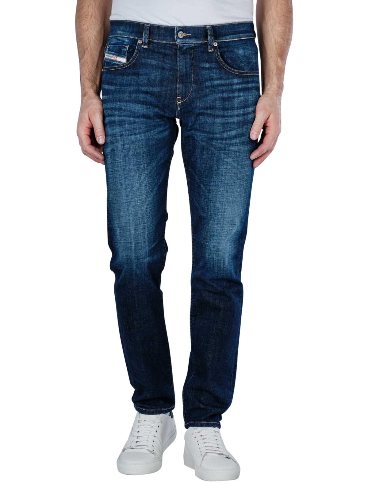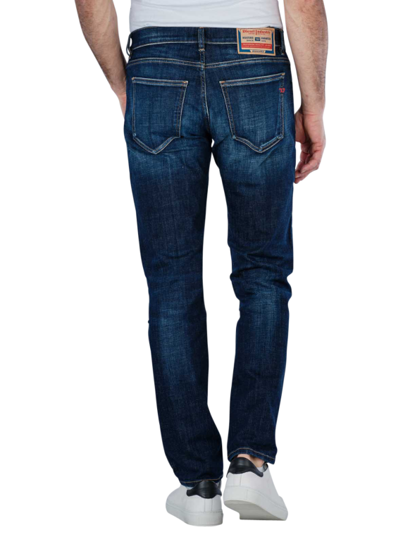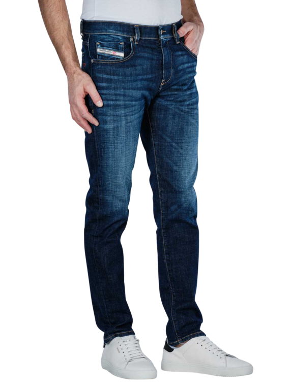 The Diesel D-Strukt slim fit jeans in dark blue are ideal for men who appreciate stylish and comfortable clothing. These jeans have a slim fit with a narrow leg cut and a mid-rise waistband. Thanks to the stretch content, they are extremely comfortable to wear. The classic five-pocket trousers have a zip fastening and a dark wash. Easy to care for at 30°C on a gentle cycle, they are made from 99% cotton and 1% elastane.