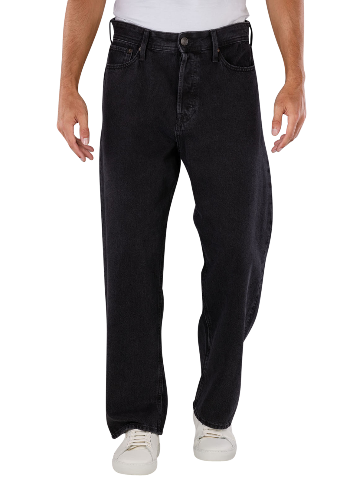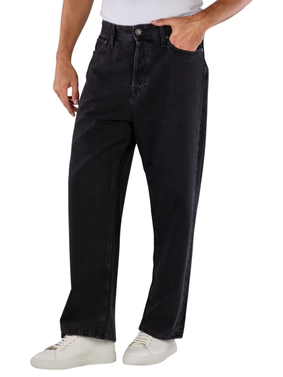 The Jack & Jones Alex jeans are loose-fitting men's jeans in classic black. With a wide leg cut and high waist, they offer relaxed comfort. Made from 100% cotton, they have no stretch and are characterised by their standard fabric thickness. The jeans have a five-pocket design and fasten with a button fly. They are suitable for the normal wash cycle at 40 degrees and should not be bleached.