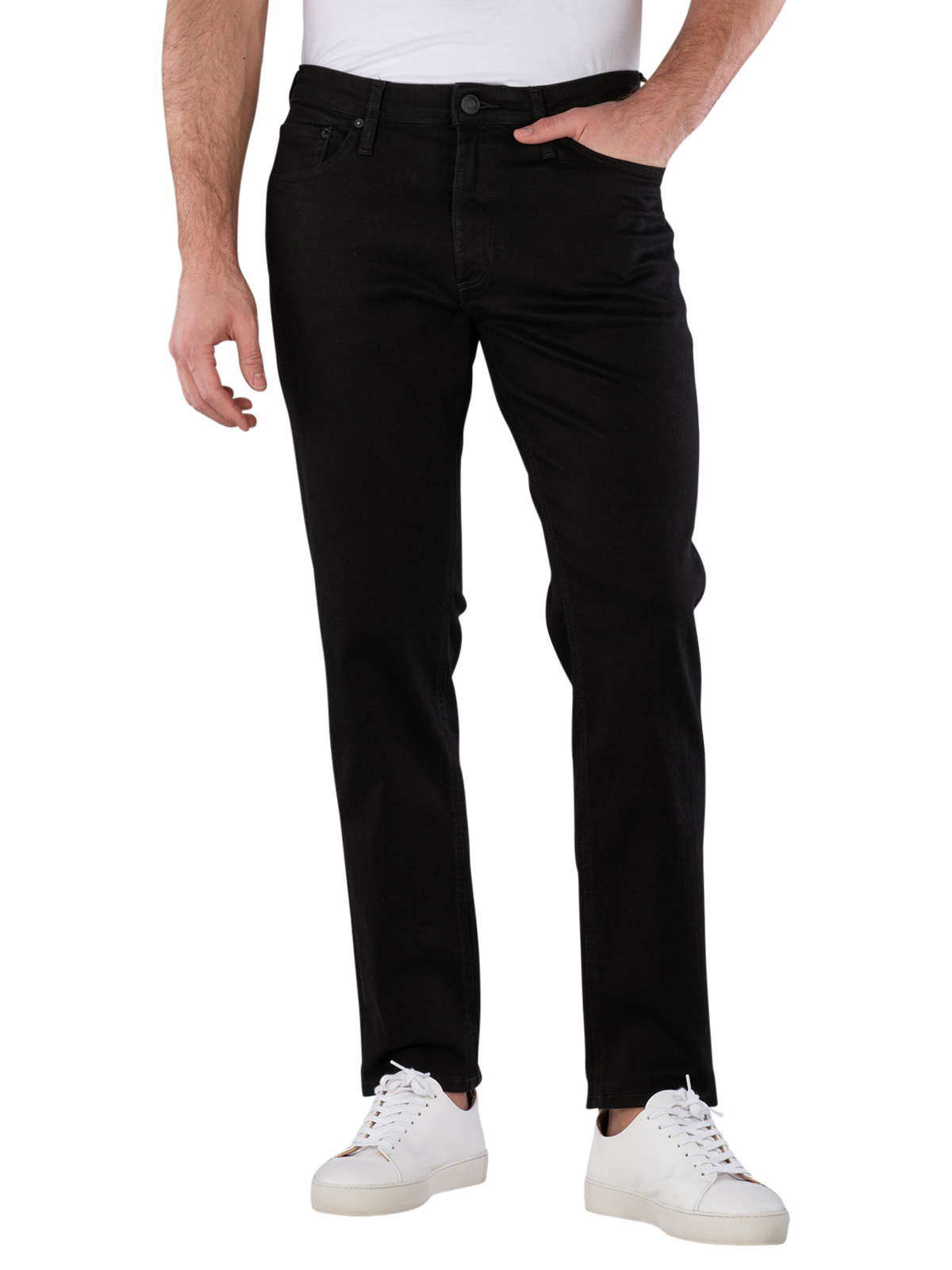 The Jack & Jones Clark Evan Jeans are the perfect choice for style-conscious men; in a trendy Straight Fit and classic black, they offer an elegant look; the slim-cut leg opening and deep waistband provide a modern fit, while the stretch content ensures optimal comfort; the jeans feature a practical five-pocket style and are made from 98% organic cotton; ideal for everyday wear, they are easy to care for and durable, washable at 40°C.