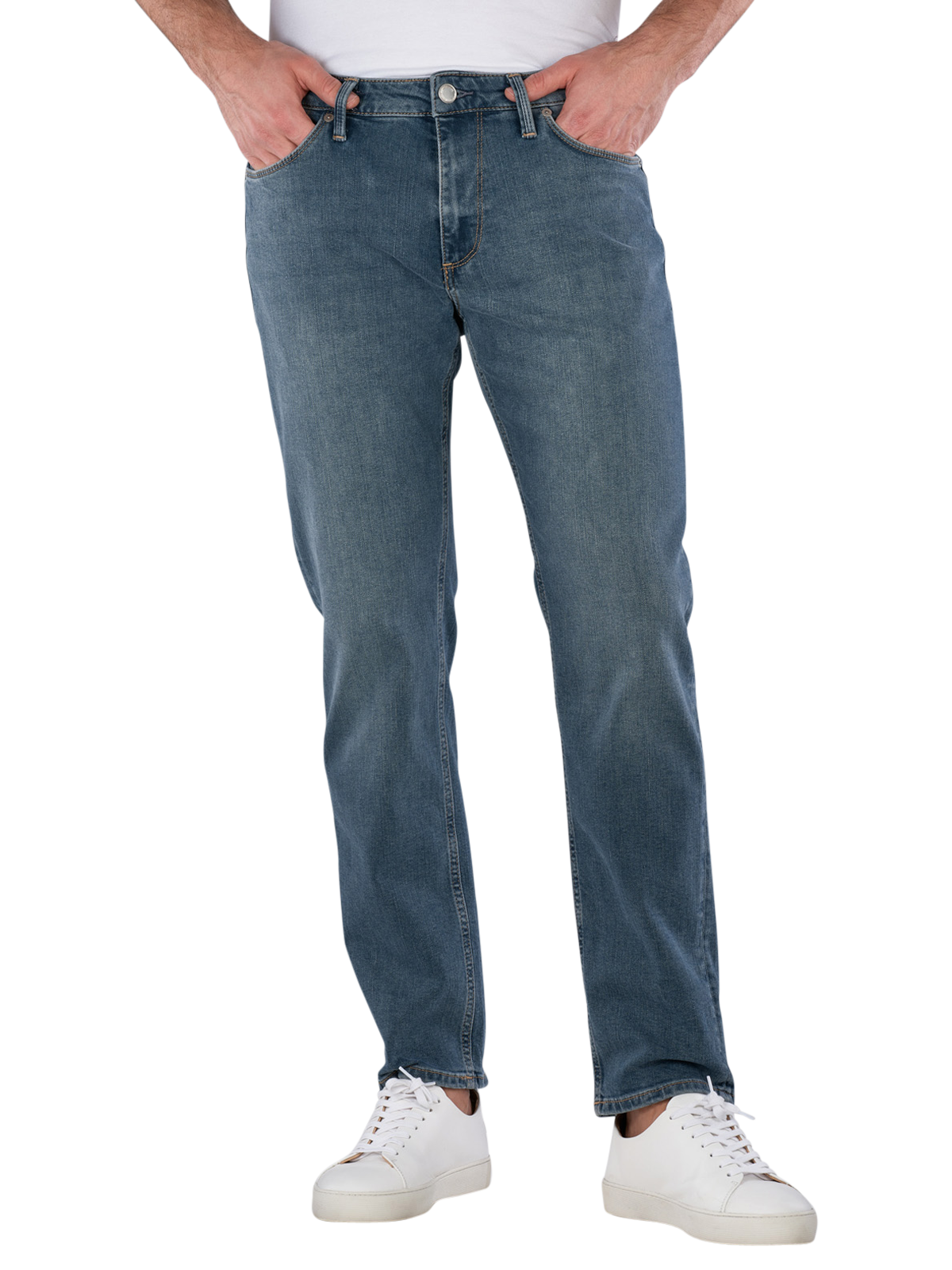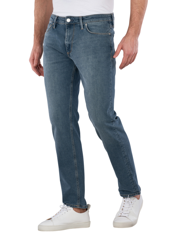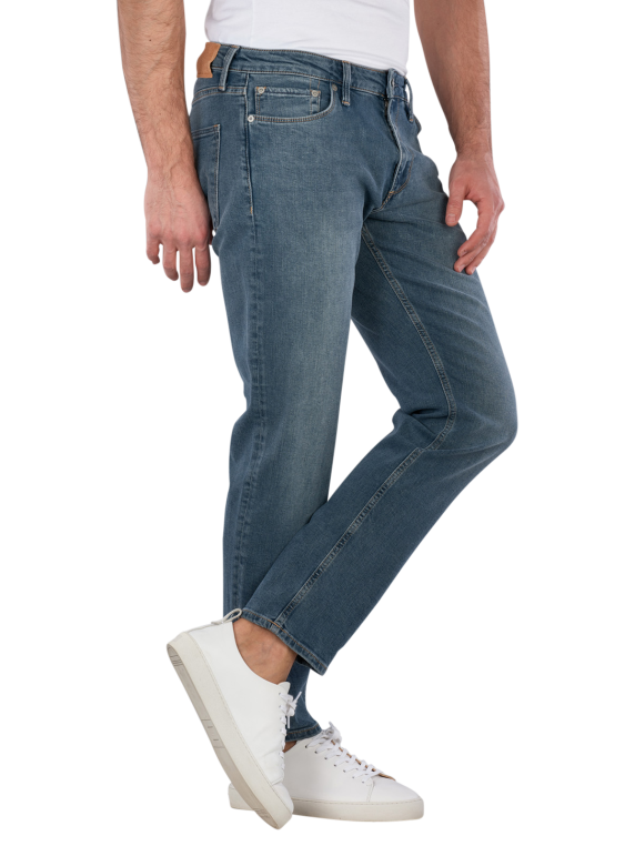 Discover the Jack & Jones Clark Evan jeans in a stylish medium blue. These men's jeans offer a modern straight fit with a comfortable, low waistband and a narrow leg opening. Made from high-quality organic cotton with a stretch component, they guarantee optimal wearing comfort and freedom of movement. The practical five-pocket construction and zipper give the jeans a classic look. Ideal for everyday wear or special occasions, they are versatile and timeless!
