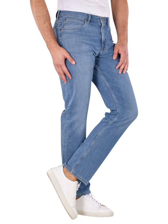 The Lee Brooklyn straight fit jeans are characterised by a straight leg cut and a medium to high waist. Available in the colours light blue and mid blue, these jeans for men offer a comfortable fit thanks to their stretch content. Made from 98% cotton and 2% elastane, they have a classic five-pocket design and a zip fastening. They come in a light-coloured wash and should be washed on a gentle cycle at 30°C.