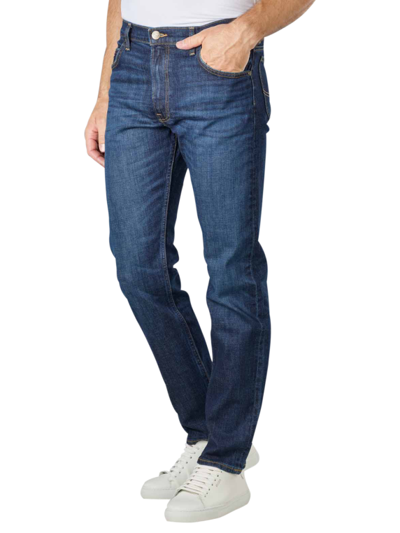 The Lee Rider Slim Fit Jeans in the Hero hue are made from a heavyweight recycled cotton denim and have a small amount of stretch. Together with the mid-rise waistband and the slim, not too tight-fitting leg, the men's jeans also offer a high level of comfort during leisure activities. In addition, the jeans with strong crease lines impress with a sporty look and uncomplicated cleaning at 30 °C in the machine.