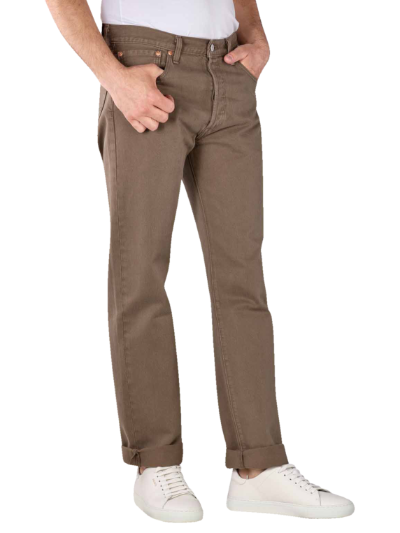 Pure cotton is used for the Levi's 501 straight fit jeans. Their warm brown colour clearly sets them apart from the typical blue jeans. The rivets on the front pockets are copper-coloured to match, while the logo button above the zip is silver-coloured. Thanks to the medium rise and straight cut, the jeans offer plenty of freedom of movement and are, of course, suitable for the washing machine and tumble dryer.